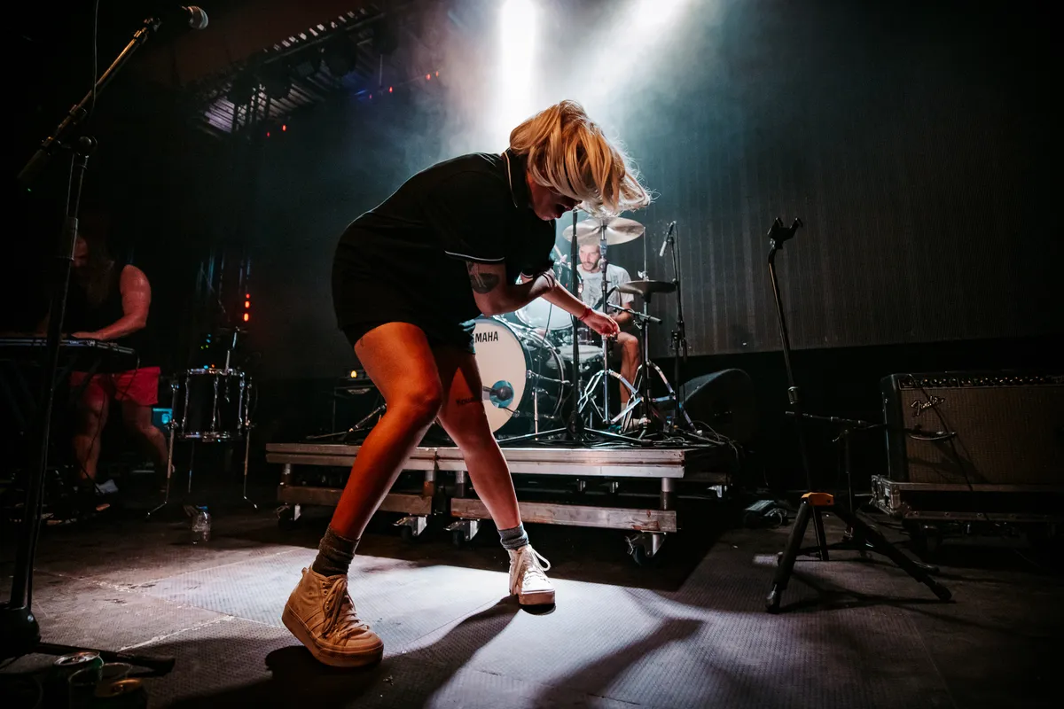 Harde gitaren, nog hardere beats, een Franse zangeres die haar frustraties uitschreeuwt. ‘Meisje, meisje, je bent veel leuker als je lacht’, schreeuwt Valentine Caulfield in het Frans, een mantra dat steeds heftiger en feller wordt, tot ze op haar knieën stort.