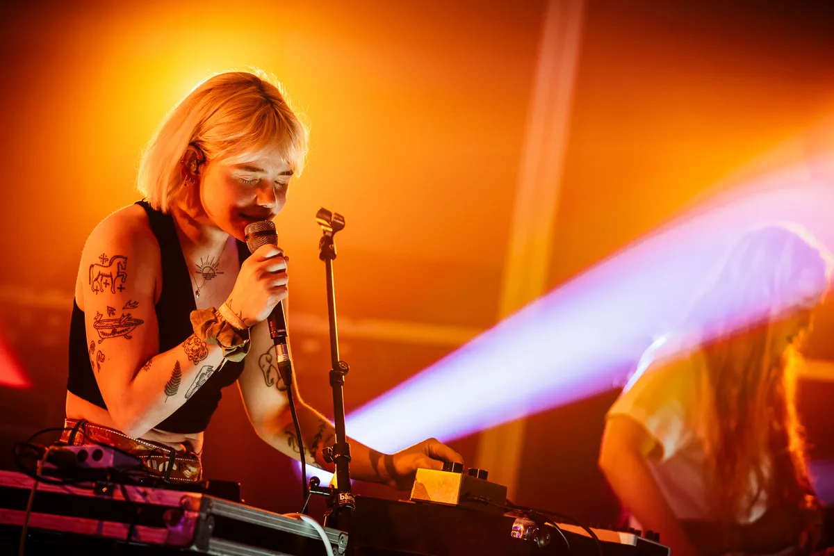 fka twigs lukt het geweldig goed, maar veel hyperpop-acts en PC Music-types falen: het is een Rubiks cube van een opgave om futuristische, in de computer gemaakte popmuziek overtuigend live te brengen. MEYY lukt het prima: de autotune op haar stem kriebelt precies zoals dat moet, en zijzelf pakt slim het verhoogde podiumpje om in een enkel spotje te gaan staan dansen. Oscar and the Wolf en Angèle zijn alvast fan van de Brusselse Charlotte Meyntjens aka MEYY; voor beide acts verzorgde ze in de afgelopen twee maanden het voorprogramma in het Sportpaleis. Maar de Palace is bepaald geen Sportpaleis, en als de zaal zo ongemakkelijk leeg blijft en iedereen afwachtend bij de bar blijft kleven, vallen haar liedjes toch een beetje dood. Zonde, want MEYY heeft de sound en de tunes al wel.