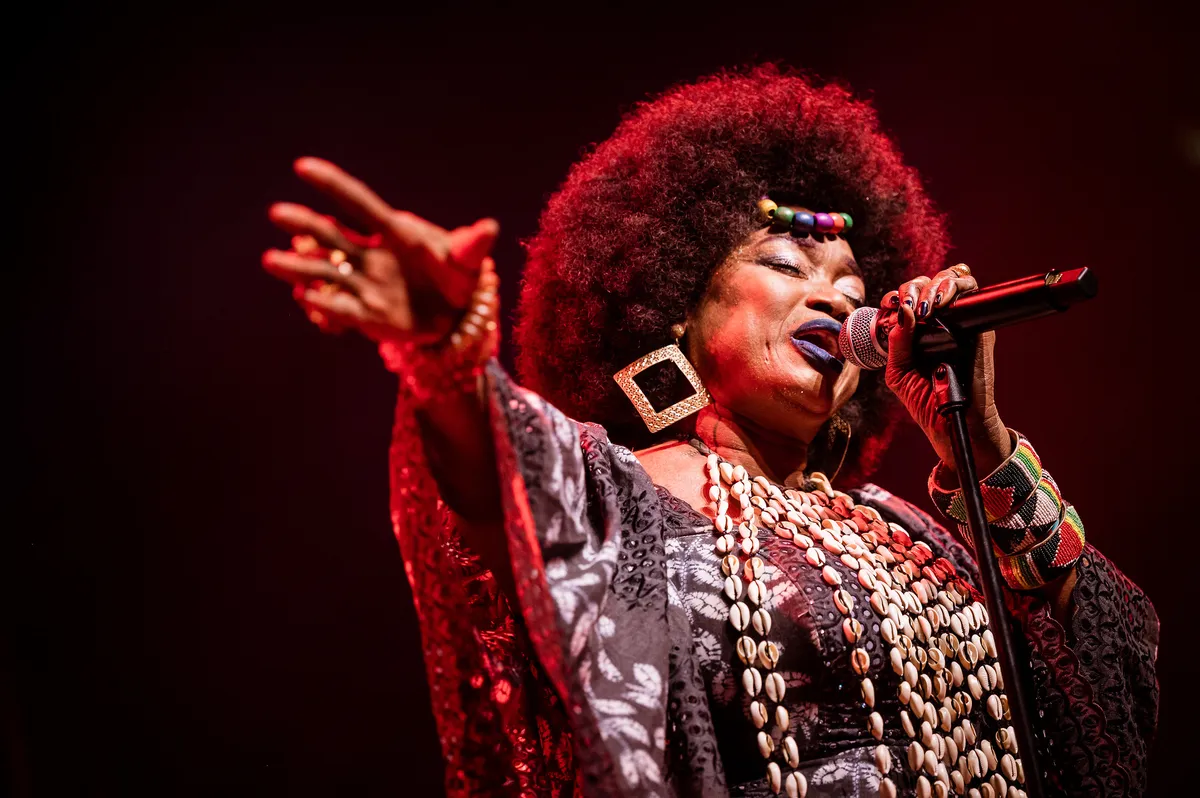 De Grote Zaal verandert op de zondagavond in een groot feest voor Malinese (en Grammy-winnende) zangeres Oumou Sangaré, die al decennia lang traditioneel West-Afrikaanse muziek uit de Wassoulou-regio combineert met elementen uit de blues, jazz, rock en folkmuziek (en daarmee wereldberoemd is geworden). Zo wordt de ngoni gebruikt binnen de band, een zessnarig instrument dat scherpe, tokkelende klanken maakt die het midden houden tussen banjo en harp, en worden de melodieën gevolgd door jazzorgel-solo’s, bluesy baslijnen en de hypnotiserende stem van Oumou. ‘You know la nostalgie, c’est ça?’ zegt ze voor ze begint aan het gevoelige ‘Degui N’Kelena’. Dat is genoeg om te weten wat je moet voelen bij de liedjes van Oumou.