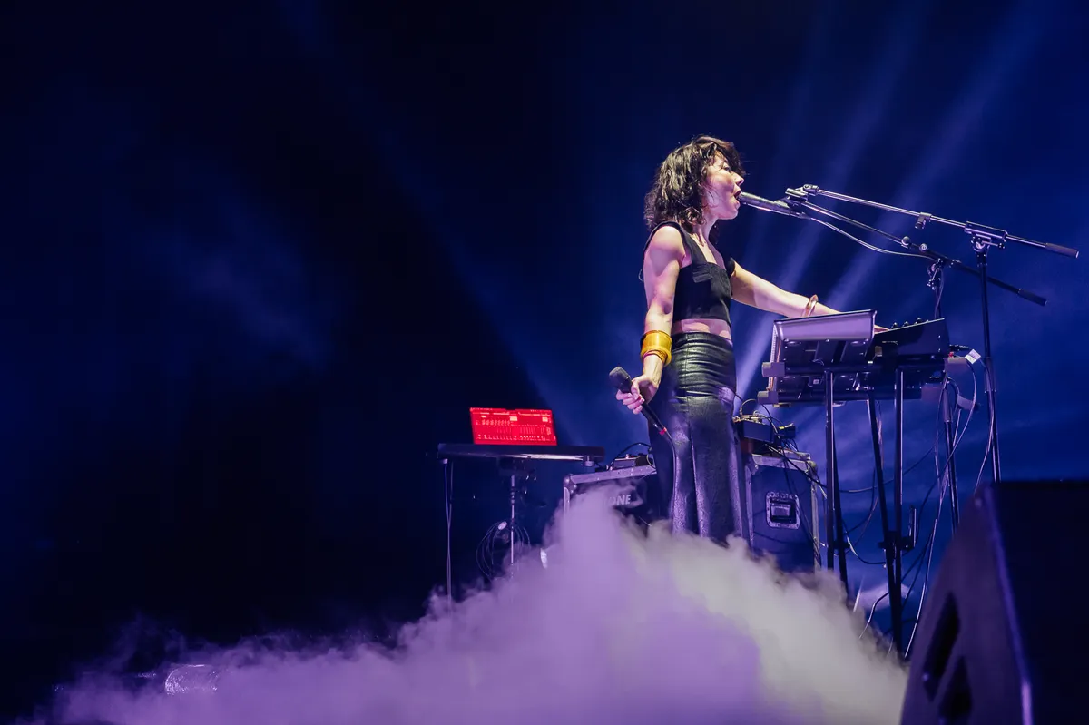Het loont om vroeg te beginnen op de zaterdag van Le Guess Who. Al om zeven uur tekent de Colombiaanse avant-gardist Lucrecia Dalt voor een hoogtepunt. Dat doet ze met enkel een drummer/percussionist naast zich, alle andere geluiden komen uit haar synthesizers. Lucrecia Dalt was in 2021 curator, maar nadien bracht ze al een nieuw album en een ode aan klassieke horror filmmuziek uit, dus dit voelt niet als een herhaling van zetten. Dalt vervormt haar stem, vervlecht hem met spooky synthgeluiden tot abstracte songstructuren. Dan ineens doemt weer een ondubbelzinnig mooie melodie op, die een moment later weer vervliegt. Als het derde seizoen van The White Lotus naar Colombia komt weten ze vast wie ze moeten bellen voor de soundtrack.