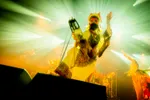 Daar zijn ze, de Zweedse Queens Of The Underground: Goat. Nog niet eerder was het zo vol in de Ronda deze Le Guess Who, de mensen hangen met armen en benen buiten de zaal om een glimp op te vangen van dit Scandinavische voodoo-ritueel. Goat brak tien jaar terug door met World Music, een trippy plaat die in feite een gestolde jamsessie was en waarop ze hun psychrock spekken met ritmische elementen uit onder meer Turkse rock en afrobeat. Inmiddels is sprake van een greatest hits show, met nummers van zeven minuten met proto metal riffs, lange solo’s, en twee zangeressen die met sambaballen, tamboerijnen en ander schraap- en schudwerk over het podium springen. Maar het knapst is nog wel hoe Goat te midden van al die complexe ideeën ook nog gewoon catchy is. Met de uitbundige maskers en gewaden erbij is Goat een sensatie om naar te kijken. De energiepiek van de zaterdagavond.