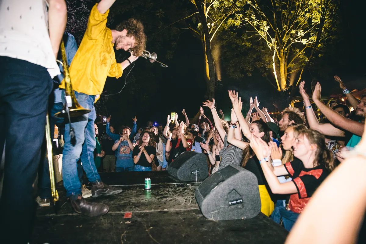 Op vrijdagnacht doet Jungle By Night op dat ene veldje (is dat nou het vuige of het idyllische?) een niet-aangekondigde show. En wat voor show: ze staan bijna twee uur op het geïmproviseerde podiumpje tegen het bos aan, en lijken losser en bedwelmender dan ooit te spelen. Ze blijven lekker lang in de groove hangen, breaks duren gerust 8 minuten en tegelijkertijd zit het vuur er continu in. Het publiek reageert euforisch: vooraan staan gillende meisjes die zo te zien hun hele voorraad al naar binnen hebben gegooid. Alsof we niet nóg twee nachten moeten. Maar zo zijn de beste spontane feestjes, toch?