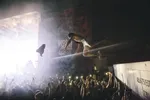 Tuurlijk, we wisten al dat SMIB-rockster Ray Fuego een killer is die elke willekeurige zaal kan omtoveren tot een krankzinnige kermis. Maar dat hij zelfs zo’n giga-loods in Tilburg op stelten kan zetten? Imposant hoor, hoe hij in zijn zilveren skins niet alleen een duik in zijn publiek neemt, maar zich ook nog eens op handen laat tillen en uiteindelijk bovenop een kolkende moshpit gaat staan. Hoe doe je dat?! Echt sensationeel.