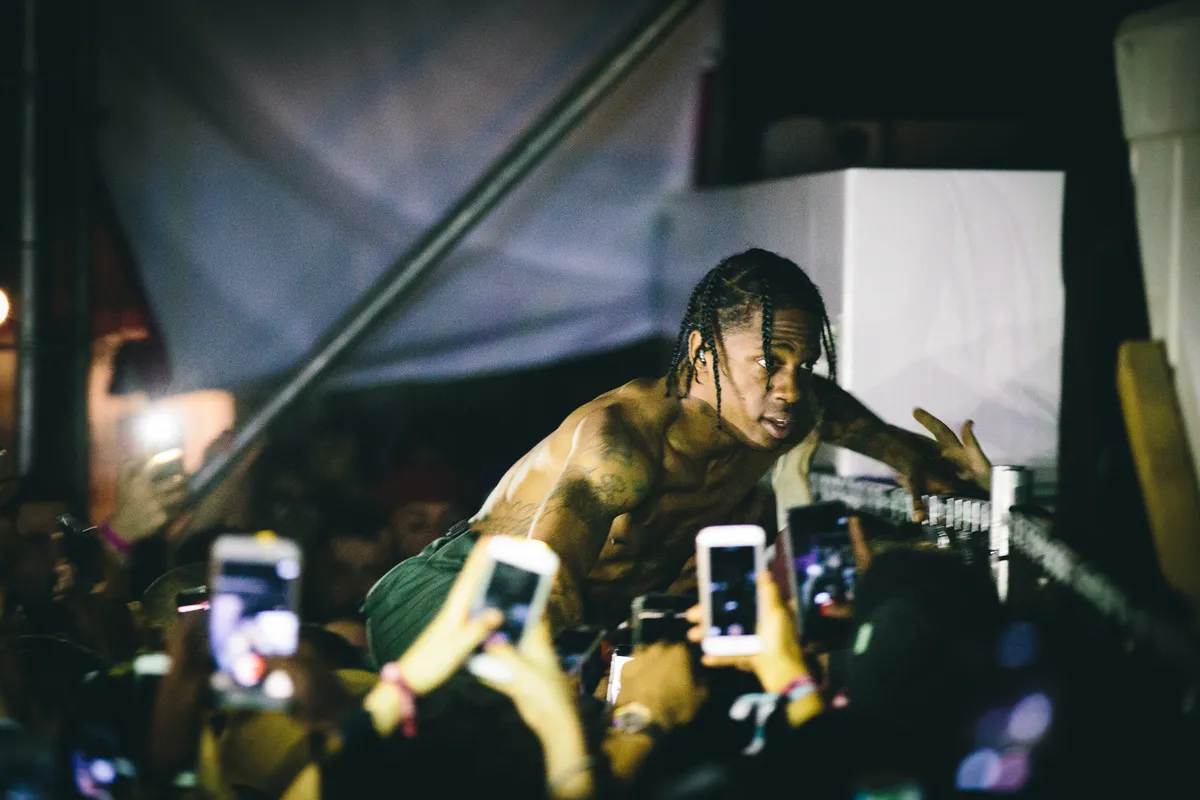 Het moment dat Travis Scott op de cabin klimt en een complete chaos overziet