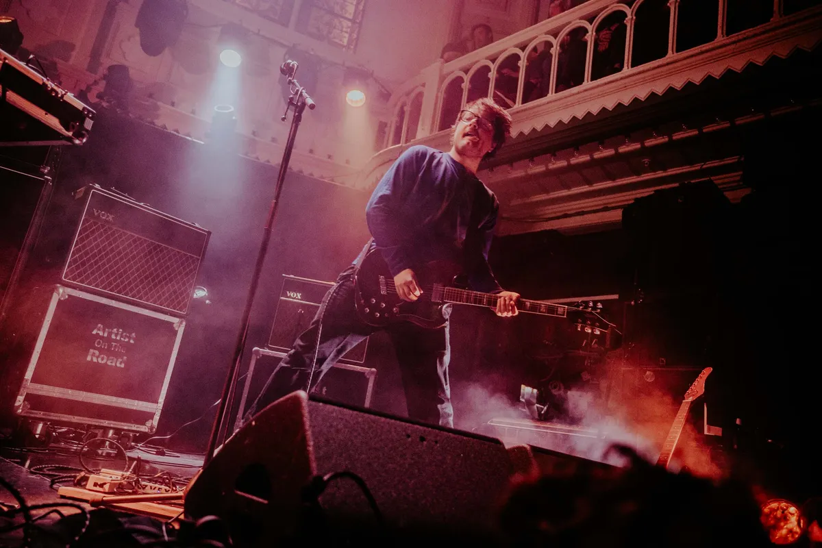 De grote zaal loopt langzaam vol als Greg Freeman aan het einde van de middag begint. Geen groots gebaar, geen aankondiging – alleen een trillende stem die iets onverstaanbaars mompelt en dan meteen verdwijnt in de feedback van zijn gitaar. Bob Dylan meets MJ Lenderman meets Black Country, New Road, maar dan met een emotioneel randje dat steeds wranger wordt. De band speelt losjes, bijna slordig, met uitbarstingen van viool en sax die de chaos net genoeg richting meegeven. De Amerikaanse zanger klinkt alsof hij uit elkaar valt terwijl hij zingt. Zijn stem is rauw, onvast, vaak op het randje van breken – en juist daardoor snijdt elk woord dwars door je heen. Hij schreeuwt soms meters van de microfoon vandaan, nét boven de muur van geluid uit, alsof hij het liever niet rechtstreeks tegen je zegt. ‘I live in Vermont… in The States…’, zegt hij ineens, gevolgd door een vallend bekertje, feedback uit de mic en een awkward lachje. Ongemakkelijk, maar het komt keihard binnen.