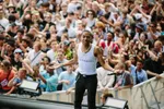 Twee zoons verloor Nick Cave in de afgelopen tien jaar. Hoe ga je daar in godsnaam mee om als artiest? Nou, door nog dichter bij je publiek te komen. Cave brengt zijn halve optreden op de rand van de hekken door, kijkt de eerste rijen recht in de ogen, gebruikt hun handen als microfoonstandaard en weet er op wonderlijke wijze in te slagen die intimiteit te verspreiden over het hele veld. Tegen het einde van de set laat hij tijdens ‘Higgs Boson Blues’ zijn publiek letterlijk zijn hartslag voelen. ‘Feel my heartbeat’, zingt de hele band en het gospelkoor. ‘Boom boom boom’. Hij is letterlijk de dood aan het verdrijven met het leven. Hier ben ik, raak me maar aan. Ik spuug, ik adem, ik zing, mijn hart klopt. Ik zet mijn hand op jouw gezicht, ik hijs me op jouw schouders, ik gebruik je als mijn microfoonstandaard, ik leun op jullie allemaal. Wat een prachtige, onwaarschijnlijke show.