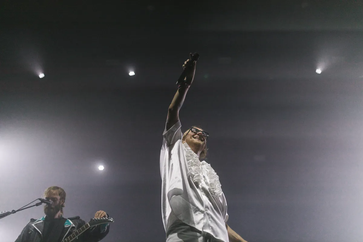 Hoeveel Hang Youth-liedjes er in één Lowlands-show gaan? Vijf A4'tjes aan setlist, schijnbaar. Broodnodig, want alles moet worden aangekaart. Van het kapitalisme tot fascisme, van 'MANNEN' (met Froukje en S10!) tot Gotu Jim's studieschuld: alles moet in de as, en Hang Youth brengt de benzine.