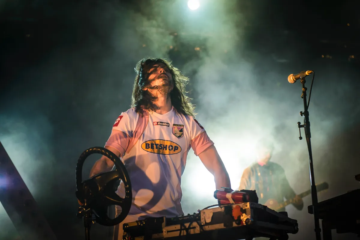 Soms zijn die riemen verrassend klein, weet Rocco Hueting. 'We speelden in Utrecht in De Witte Ballons, met z'n vijven op drie vierkante meter. Toen heeft iemand de zanginstallatie op een dimstopcontact aangesloten, waardoor de hele constructie het niet meer deed. Zijn we lopend van het café naar die plek van Go Back To The Zoo gegaan. Daar hebben we alle boxen die we konden vinden en die enigszins geschikt waren om zang doorheen te laten gaan meegenomen. Ondertussen waren we al twee uur uitgelopen. Tijdens het optreden stond ik met m’n rug naar het publiek in een hoek tegen een muur. Ik keek er zo tegenop, maar toen we gingen spelen was het eigenlijk zo leuk. Die gig vergeet ik nooit meer. Alles wat fout kon gaan ging fout, maar uiteindelijk kwam het goed.'