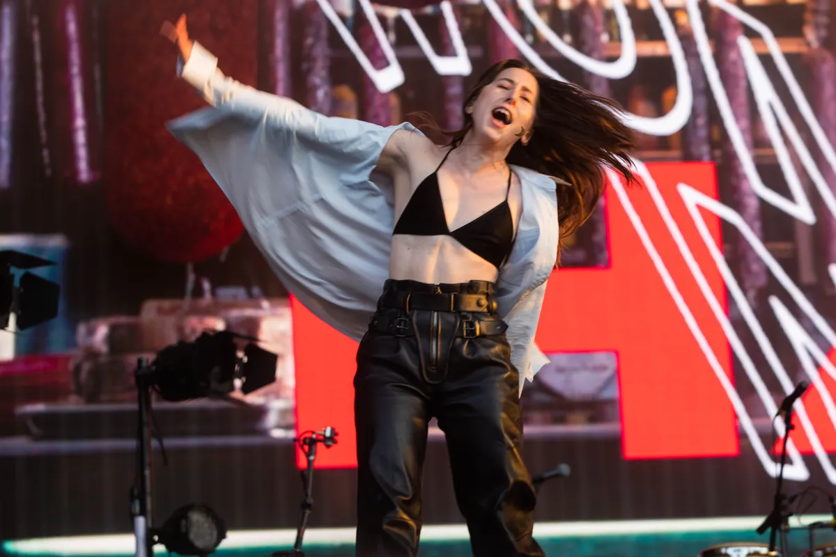 Zo gebeurt er de hele tijd van alles bij de vrolijke zussen Haim die tijdens de lockdown nog alle drie, met hun ouders, opdoken in de nieuwste Paul Thomas Anderson film. Alle Summergirls mogen op de schouders, Este trekt gekke bekken alsof ze in een grindcoreband zit, Danielle switcht naar het drumstel. Het wordt er een beetje rommelig van, maar gek genoeg gaat dat niet ten koste van de show maar maakt het de HAIMs juist likeable. De dames hebben inmiddels een heel arsenaal aan sterke songs, waarin ze old school 70s pop à la Fleetwood Mac een gelikte moderne feel geven, en afsluiter ‘The Steps’ is de beste van allemaal. ‘Wie gaat er vannacht mee skinny dippen? Drie uur?’ (AdV)