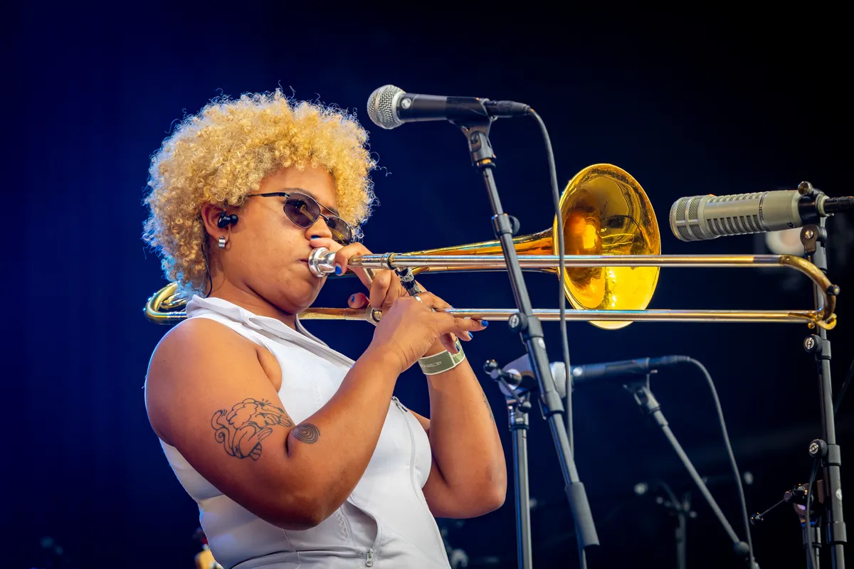 Terwijl de eerste druppels van het weekend vallen, drinken festivalgangers slaperig een kop koffie of roken een twijfelachtig smakende sigaret. De echte bikkels zitten natuurlijk al aan hun derde biertje. Gelukkig is daar Kokoroko, dat de vroege middag in glijdt met een zonnige mix van afrobeat, jazz en funk. De echte regen blijft uit — of wordt simpelweg weggeblazen door hun warme slowjams. Tuff Times Never Last is de naam van hun aankomende album — aka: die kater verdwijnt wel.