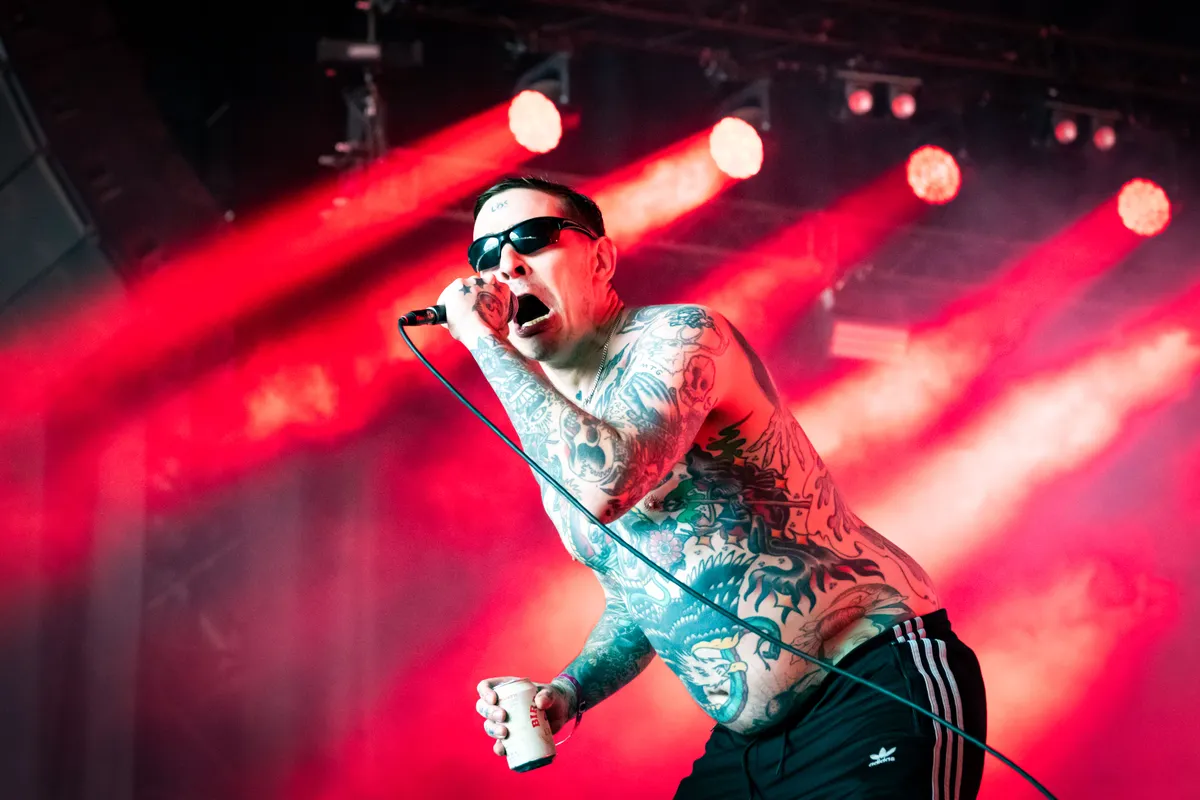 Brak? Moe? Jammer dan. Je favoriete Zweedse hooligans staan op het punt om de tent af te breken. Viagra Boys zonder een dikke moshpit en een overdaad aan bier is als een vis zonder water. Na het eerste nummer is zanger Sebastian Murphy (hij is de Amerikaan van het stel) al aan het hijgen, rochelen en compleet buiten adem. Ook niet heel gek als je een halve krat pils met je meedraagt in je buik. Het bier klotst uit zijn blik terwijl hij de rauwe postpunkliedjes voorziet van teksten over chlamydia, roken, drinken en blut zijn. Maar vergis je niet: deze jongens hebben wel degelijk iets te melden. ‘Free fucking Palestine!’ bijvoorbeeld, gevolgd door een emotionele uitvoering van ‘Medicine for Horses’. Daarna gaat het weer vol gas de andere kant op met cultclassic ‘Sports’ en de bijbehorende push-ups. Dat worden er vijf, misschien zes, dan is het wel klaar. In blessuretijd pakt de toetsenist de spotlight. Hij lijkt nog de normaalste van het stel, maar dat beeld valt snel in duigen. De synth wordt een keytar, hij laat het publiek erop meppen en duikt er zelf achteraan. Terug op het podium heeft hij een half Palestijnse, half Zweedse vlag als trofee meegenomen. Dom doen met een hart op de juiste plek blijkt dus prima samen te gaan.