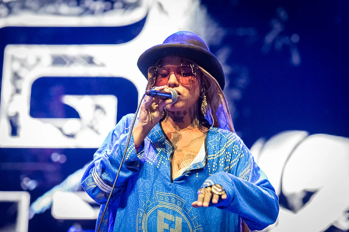 ‘We lost our MPC, so it’s gonna be a little bit more raw and stripped down today.’ Ergens op het vliegveld is Greentea Peng haar sampler kwijtgeraakt — geen backingtracks dus, geen vette samples zoals je die van haar nummers kent. Ze baalt er wel een beetje van: ‘How long have we got left?’ vraagt ze al een kwartier voor het einde. Maar eigenlijk mist het publiek niets. De band is weergaloos, haar presence hypnotiserend, haar delivery eigenzinnig en vol mystiek. Gehuld in een blauw gewaad, onder de tatoeages en met een brandende Palo Santo in de hand voelt Greentea Peng meer als een sjamaan dan een zangeres. Ze neemt de tent mee op een zwoele reis langs psychedelische r&b, neo-soul, bossa nova en afrobeatjazz. De ritmes zwieren van hot naar her, de tempo’s wisselen constant — het is een dromerige trip met hoge variatie. Halverwege komt er zelfs een stukje disco langs, als de band ineens ‘Lady (Hear Me Tonight)’ van Modjo inzet. Je weet bijna niet meer waar je bent — en Greentea Peng blijkbaar ook niet: ‘How we doing Amsterdam?!’ roept ze tot drie keer toe.