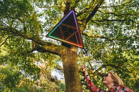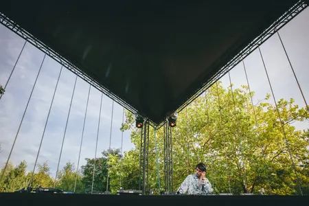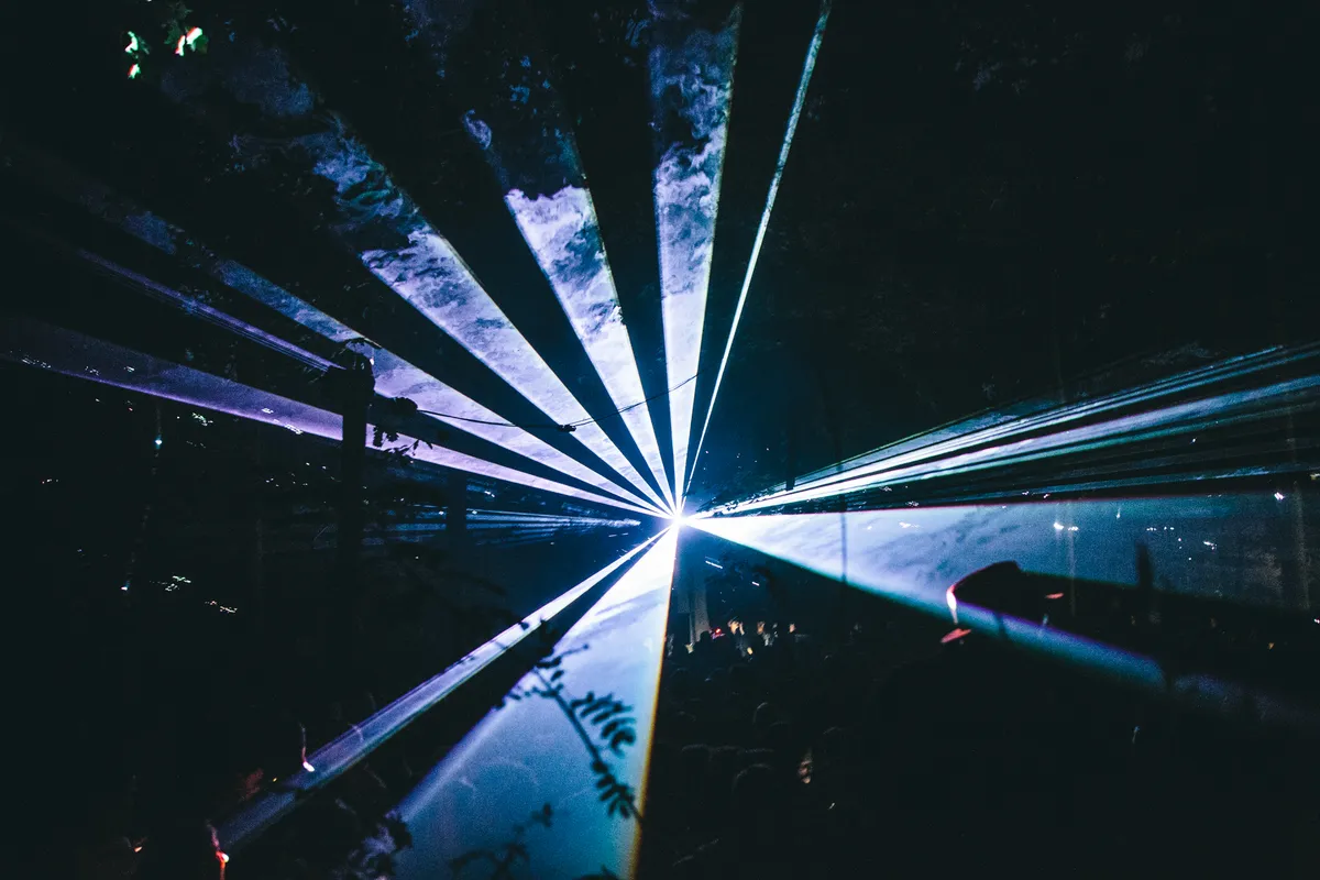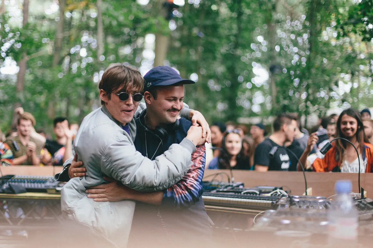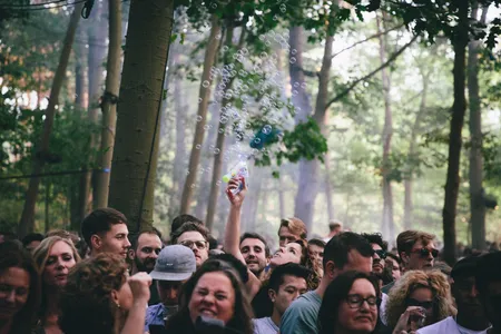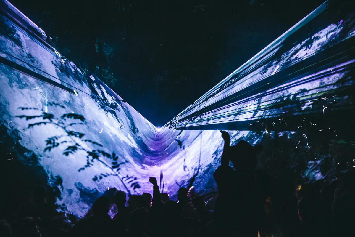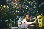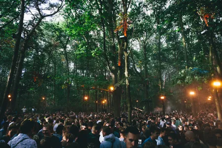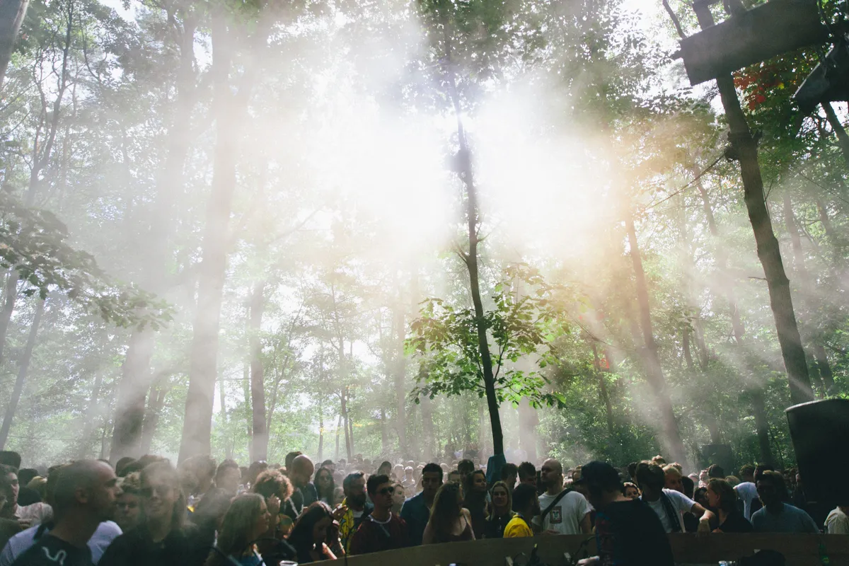 Zeker wanneer de nacht valt is dat podium te gek: de stage is gelijkvloers in een cirkel om een kanjer van een boom gebouwd, waar het publiek aan alle kanten omheen kan dansen. Overal hangen speakers, waardoor het geluid van alle kanten komt, je van veraf geen flauw idee hebt waar die dj-booth zich eigenlijk bevindt en het lijkt alsof je op een illegale bosrave staat. Dat gevoel wordt nog eens versterkt door het gebrek aan duidelijke omheiningen. Nergens staat een hekwerk, er worden slechts wat afgezaagde takken gebruikt om het terrein af te bakenen. Het lijkt wel alsof je alle kanten op kunt struinen en verdwalen in de bossen. Joeri Woudstra (Torus) en Nikki Hock maakten het lichtdesign en zijn all out gegaan: er hangen een stuk of honderd stroboscopen in de bomen, en nog eens een flink aantal lasers die verbluffende golvende patronen door de takken creëren. Continu zie je gasten elkaar aantikken en hun smartphones erbij pakken, om maar zoveel mogelijk van deze beelden vast te leggen.