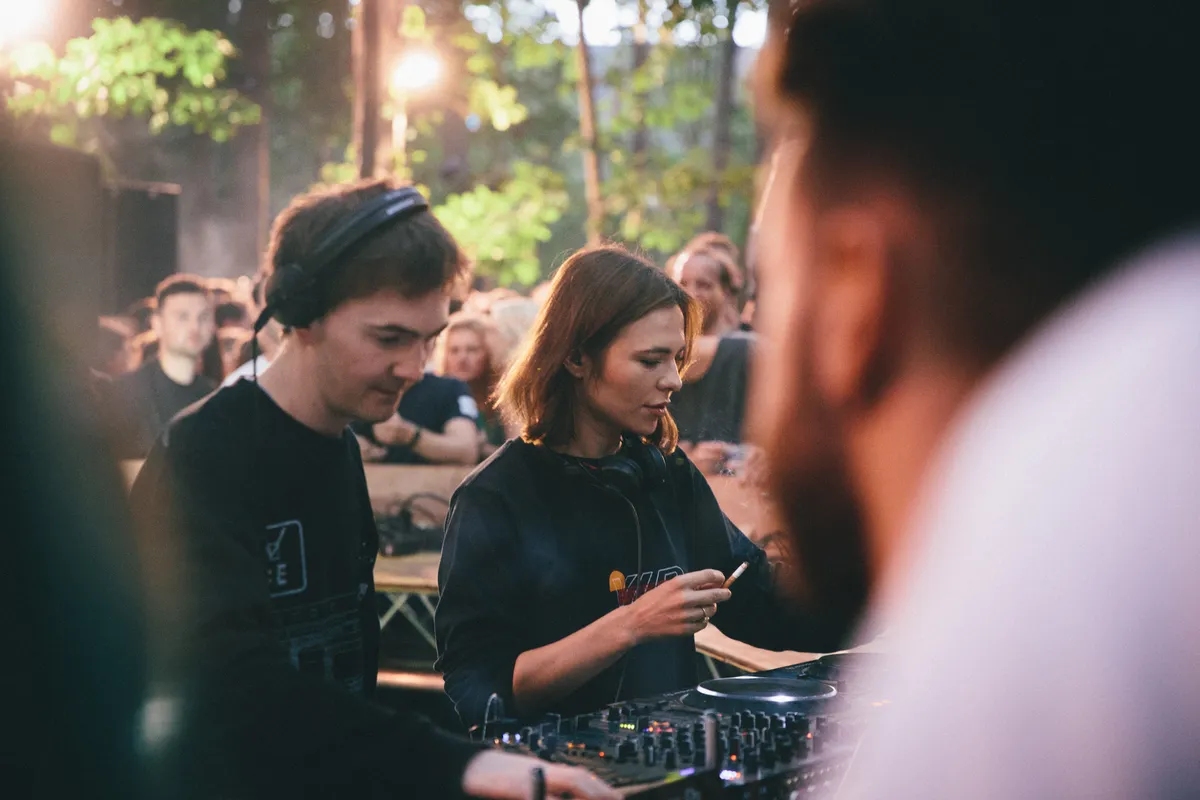‘Toen ik het gerucht hoorde dat deze twee samen zouden draaien, heb ik meteen een kaartje gekocht en een vliegticket geboekt!’, brult een Britse gast euforisch in mijn oor. Voor onze neus staan Nina Kraviz en Ben UFO voor het eerst in hun carrière een verrassings-b2b te geven op een piepklein podium in de Tilburgse bossen op het eendaagsfestival Draaimolen. Zij groeide uit tot een eigenzinnige Siberische technogrootheid die evengoed Tomorrowland als De School aandoet, hij is een van de meest veelzijdige en virtuoze dj’s van het moment en sowieso de favoriete dj van jouw favoriete dj. Kortom: die combinatie is de natte droom voor menig danceconnaisseur, en een combinatie waar je je op papier weinig van kunt voorstellen. Ze lijken dan ook een beetje zoekende in de anderhalf uur die ze samen doorbrengen, maar vinden elkaar op de juiste momenten. Nina danst uitzinnig terwijl Ben naadloos een gekke breakbeat inmixt in haar straightforward techno. Zozeer dat de champagne over de rand van haar glas klotst. ‘She’s so badass!!!!!’, roept de Brit nog maar eens wanneer Kraviz vervolgens een bizarre Shackleton-plaat draait en een peuk bietst van een meisje vooraan.