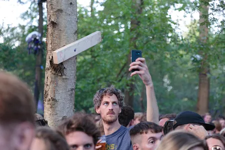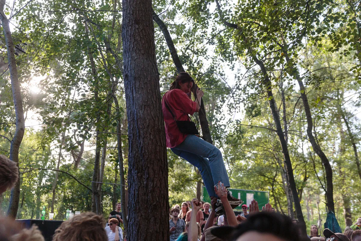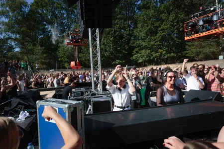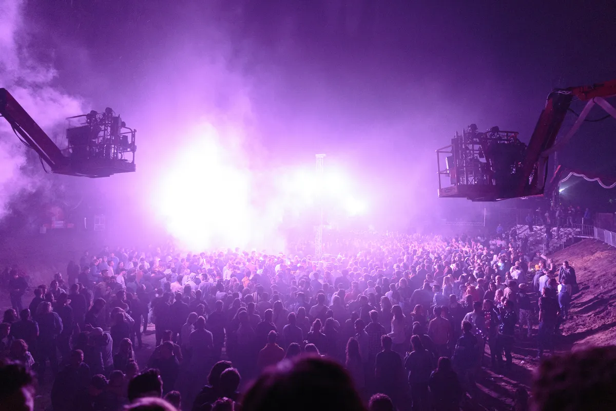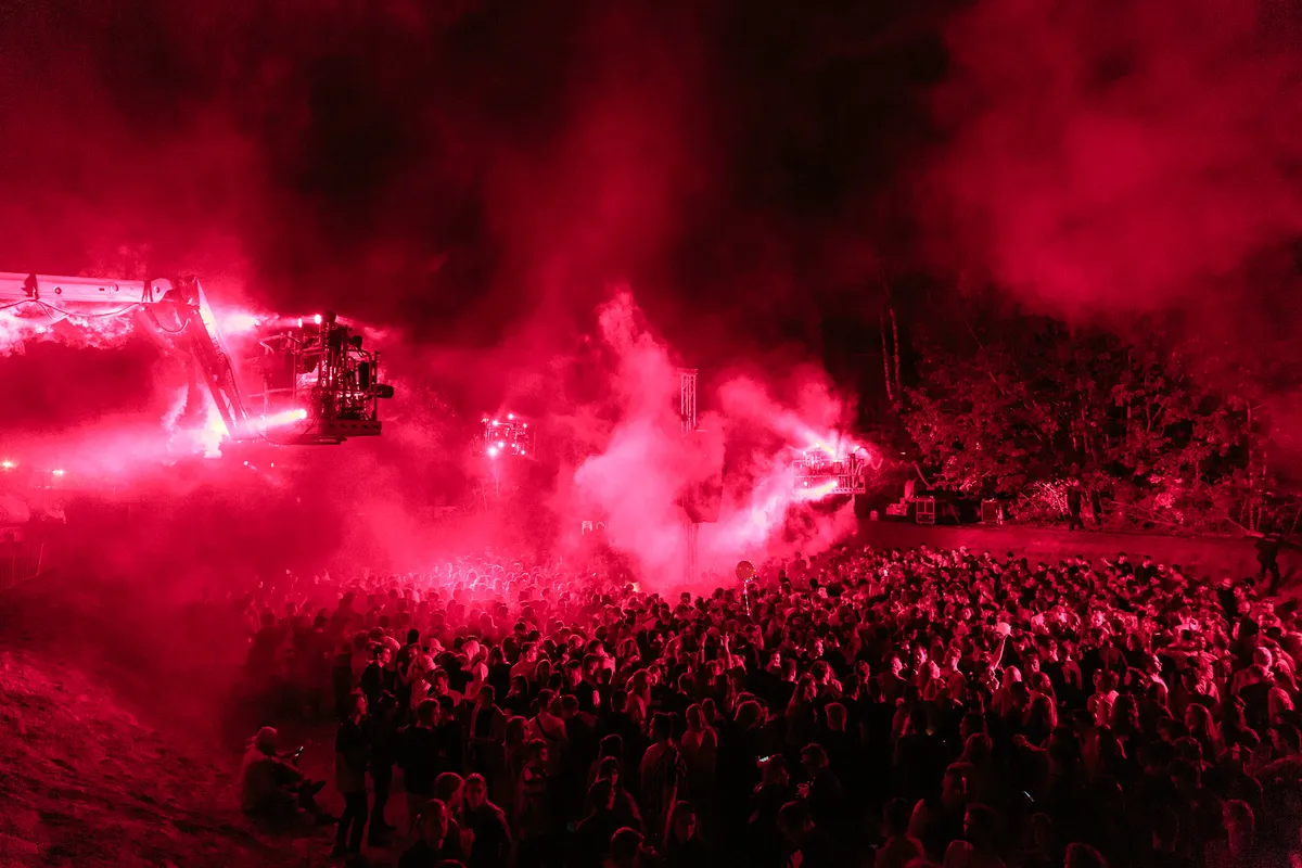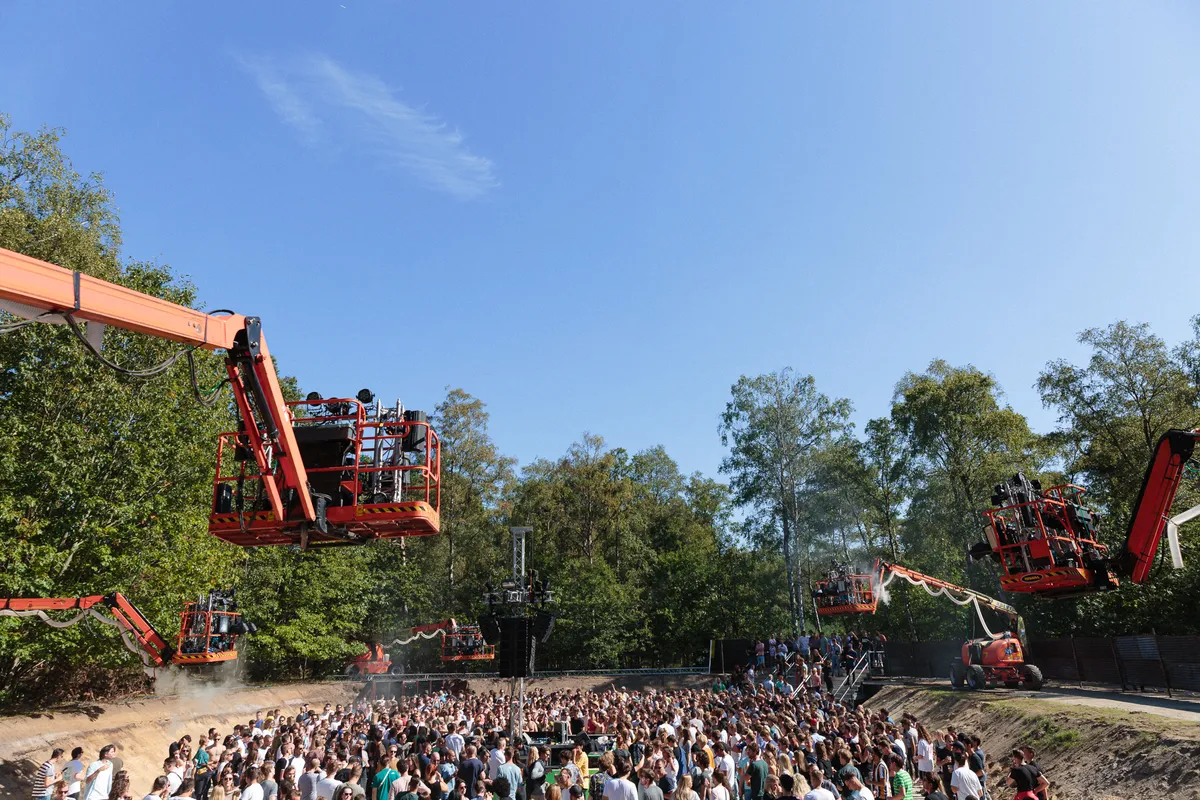 ‘What the fuck hebben we onszelf op de hals gehaald?’, lijkt zo’n beetje heel het Draaimolen-team te denken rond kwart voor 1 ’s middags. ‘Waren we toch te ambitieus?’ Die arme mensen zien er stuk voor stuk uit alsof ze een nacht hebben doorgetrokken, en daarvoor ook al een weekje slecht hebben geslapen. Het nieuwe thuis van het smaakvolle house- en technofestival in Tilburg is prachtig, maar zo te zien heeft de organisatie een beetje onderschat hoeveel werk er zou gaan zitten in het temmen van de bosrijke braakliggende MOB-complex dat ooit als militair terrein werd gebruikt. Ze gingen er bijna aan onderdoor!