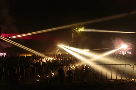 Serieus ja. Op Draaimolen zie je amper glitters en helemaal geen eenhoornonesies in het publiek. De circa 12.000 bezoekers zijn overwegend zwart gekleed en goed geïnformeerd. Ja, ze weten echt wel dat Draaimolen een uitzonderlijk smaakvol programma heeft samengesteld dat zich kan meten met de scherpste dancefestivals van Nederland. En op sommige vlakken zelfs weet te overtreffen! De backstage catering wordt bijvoorbeeld verzorgd door tweesterrenrestaurant Tribeca (dat voor de gelegenheid de deuren een dagje sloot) en in de grote finale staan vier Dekmantel-headliners tegenover elkaar: Four Tet op het spiegelpaleis (valt tegen, maar wat zijn die lichtgevende spiegels vet, als poorten naar een andere dimensie), Helena Hauff in de kuil (keihard natuurlijk), Marcel Dettmann in zijn Tunnel (iets té keihard) en John Talabot op het Aura-podium (niet wezen kijken, want je kunt wel blijven lopen, maar beter ga je dansen). En dan appen vrienden lyrisch dat de Italiaanse grootmeester van de trippy techno Donato Dozzy óók nog een geweldige set heeft gegeven tussen de lasers, zinderend als vanouds en niet zo sloom als zijn saaie set op Dekmantel.