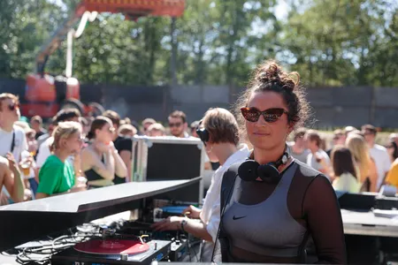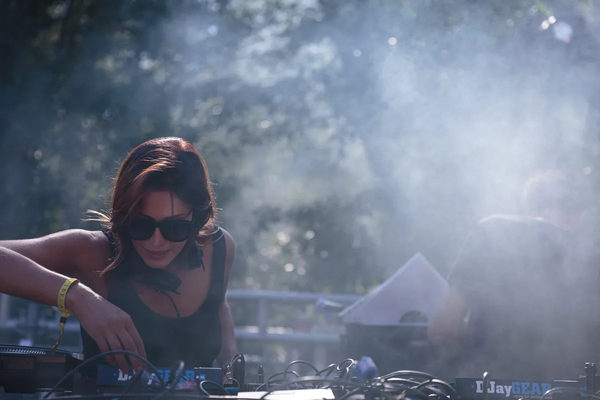 Daar is het Eris Drew uit Chicago die halverwege de dag opvalt met een vreugdevolle achtbaanrit van een dj-set vol nineties raveplaten. Haar favoriete trucje: tijdens een break opeens het tempo met 20 BPM naar beneden schroeven, om weer vol gas te geven wanneer de kick erin komt. Elke keer weer krijgt ze de dansers er gek mee, die met takken beginnen te zwaaien en in de bomen klauteren van euforie. Met een jointje tussen de lippen vermaakt Drew zichzelf door continu te scratchen (soms zelfs met vogelgeluiden?!) en keihard met haar discodiva’s mee te zingen.