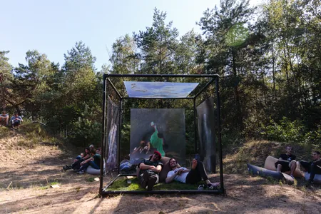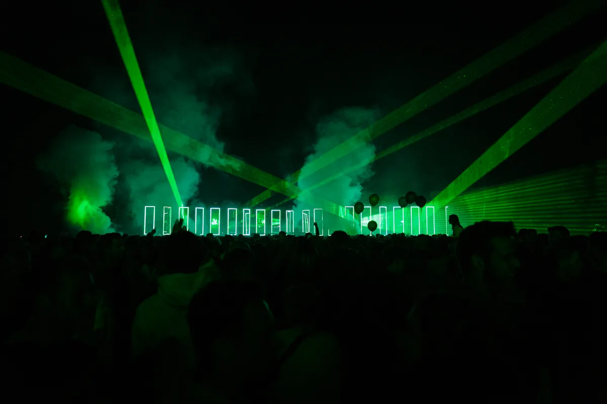 Maar zodra de festivalpoorten eenmaal opengaan, kijken de dik 12.000 bezoekers hun ogen uit. De podia doen in niets denken aan reguliere festivalstages: het hoofdpodium is een duizelingwekkend spiegelpaleis, visueel artiest Heleen Blanken tuigde haar eigen ambient-kapel op, de Duitse technogigant Marcel Dettmann kreeg zijn eigen Tunnel, die met een groot LED-scherm en flitsende lichtpalen inderdaad voelt alsof je door een tunnel sjeest. En dat ene Strangelove-podium is minstens zo imponerend. Waarom die wat later werd geopend? ‘De derde laag glow in the dark-verf moest nog drogen’, giechelt een peentjes zwetende Job Jobse.