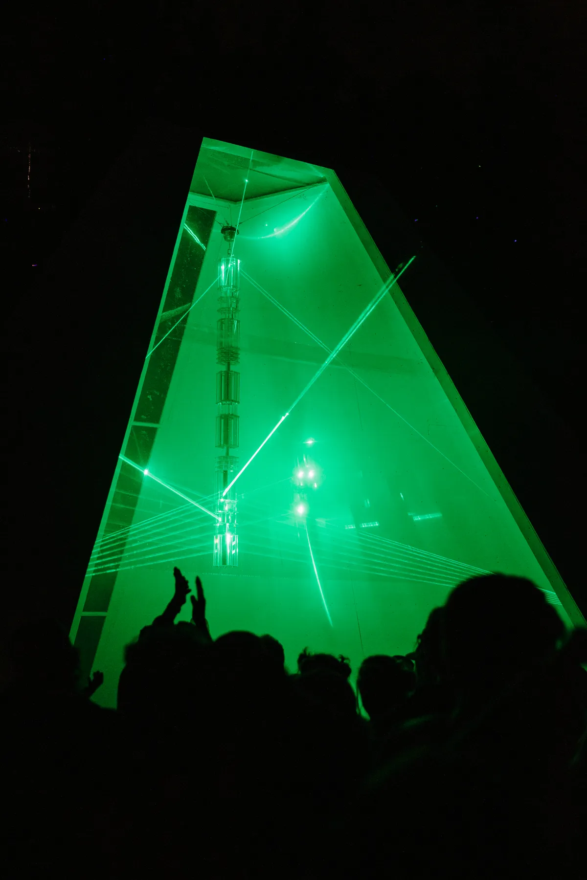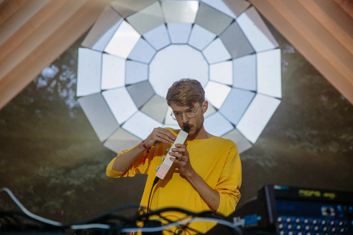 Er zijn ook plekken waar je helemaal niet hóéft te dansen, want Draaimolen focust ook op liveshows en luistersets waar je eventjes mag wegzweven. Koreless verknipt op de tweede Chapel-stage pop-vocalen net zo lang totdat het als modern klassiek klinkt, in dat lichtgevende alienlaboratorium trekt hij ook harpgeluiden uit elkaar en draait hij die euforische Caribou-remix waar de belofte van een kick nooit wordt ingelost. Oceanic primeurt op dezelfde Chapel-stage een liveshow vol materiaal van zijn aanstaande album. Hij heeft een wholesome, improvisorisch vriendenkoor mee (dat niet al te zuiver zingt), en speelt een schitterende schemerset vol melodische opbouwen en een weird blaasinstrument die perfect is voor het vallen van de avond.