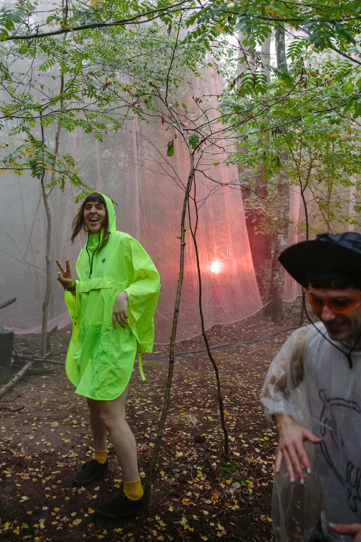 Dit bos is het domein van Eris Drew en Octo Octa uit Chicago. Hun liefde voor knetterende, oldschool house en raveplaten wordt slechts overtroffen door de liefde die ze voor elkaar hebben. Maar echt: onlangs nog schreven ze muzikale liefdesbrieven aan elkaar, en dat werd hun nieuwe split single. Ze stonden vorige maand nog primetime in de Bravo op Lowlands én headlineden samen Dekmantel, dus het is bijna ongelooflijk om te beseffen dat ze hier al een week in het bos rondlopen om zelf die stage in elkaar te timmeren. En ze nodigden bevriende dj’s uit om twee dagen met hen te draaien. Terwijl de sassy Portugese dj Ketia draait, loopt Drew al kriskras tussen de bomen door om bij ravers in de oren te gluren. Wat, draag je geen gehoorbescherming? Hier, heb je een setje oordopjes. Staat de New Yorkse Russell E.L. Butler even later broeierige minimal house te draaien, dan staat Octo Octa glunderend naast hen mee te swingen. Te cute!