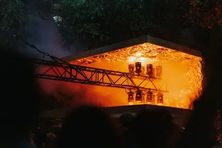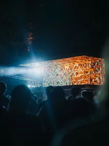Oh Draaimolen, zodra het duister valt over het MOB-Complex transformeert de boel nog eens, en wordt weer duidelijk hoe begeesterd ze hier nadenken over het lichtplan. Geweldig hoe die lichtgevende UFO vervaarlijk rondvliegt boven de Pit wanneer Sherelle en Gigi FM na een kwartier ingewikkelde struikelritmes opeens tot explosie overgaat met de UK drill van Headie One. Hoe de Moon bij Powder (op een heerlijke trip-plaat van DJ Koze) opeens ECHT een lichtstraal naar de volle maan schiet. Je zou jezelf in vijven willen opsplitsen, om te onthaasten en overal geduldig te kunnen blijven plakken, om niet te missen hoe bij de psychedelische techno van Wata Igarashi het lichtplan van de hijskraan steeds ingenieuzer wordt. Hoe bij de wat ingewikkelde IDM van Clark opeens blijkt dat er ook een ronddraaiende 360 graden-laser aan de UFO hangt, die een kronkelend lijnenspel achterlaat op de bomen. Vooral ook hoe stoer Benny Rodrigues en Carista draaien als b2b-headliner, echt een match made in heaven, met dat mega-plafond aan lampen dat over het hele veld hangt, waar óók nog lasers doorheen schieten.