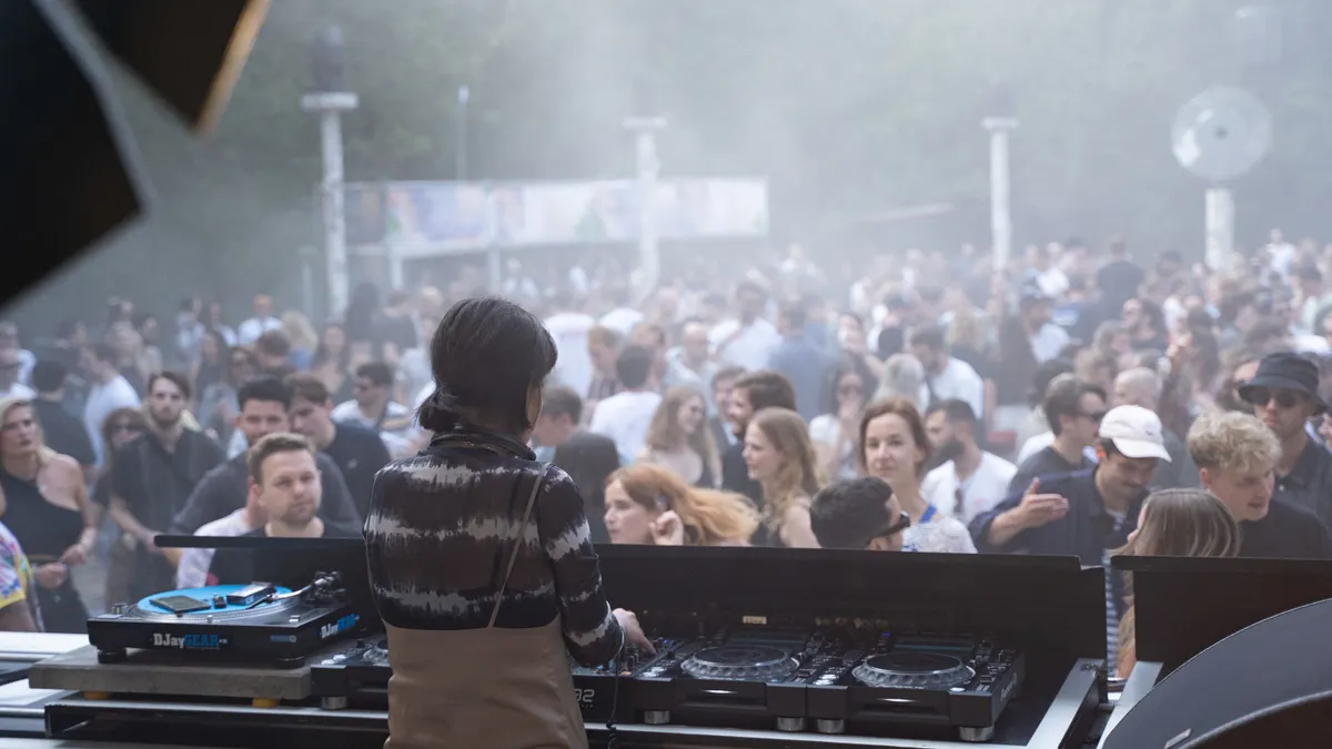 Eigenlijk is dit het enige logische slot van de dag. Het is er eentje die je naar je fysieke limiet pusht, die van hard, naar harder, naar hardst gaat. Dj’s gaan vandaag vanaf het begin plankgas met explosieve techno. Dat kan ook wat rauw op je dag vallen. Zoals bij Dasha Rush, een Russische wiens rauwe techno uitermate geschikt is voor gigantische loodsfeesten zoals Reaktor of Katharsis. Vandaag draait ze een straffe set onder de perzikkleurige lucht. Dat heeft ook wat bevreemdends: stelletjes die er nog even in moeten komen zoeken beschutting in de bosjes, of staan weifelend aan de rand. Vooraan zie je iets heel anders. Daar dansen ravers die eruit zien als vaste gasten van Spielraum, die dansen met hun hele lichaam en het gewend zijn om te schakelen van nul naar honderd.