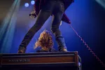 Vervolgens is er nog een halfuur voor de laatste twee nummers op de setlist. Zouden ze echt? Jazeker, 'Pistol' is zo'n hemeltergend epos met solo op solo op solo op solo. En weer duikt Piso met zijn golvende manen op zijn orgel, de kin helemaal op de toetsen. Ritueel wapperend met zijn hoofd komt hij weer omhoog als zijn vingers aanzetten, gevolgd door drum en gitaar. Na een minuut of twaalf laat de band het even helemaal vieren en denk je verlost te zijn van deze masturbatierock, maar niets is minder waar. En dan komen er natuurlijk als toetje ook nog een paar soloroffels van de jarige Luka.