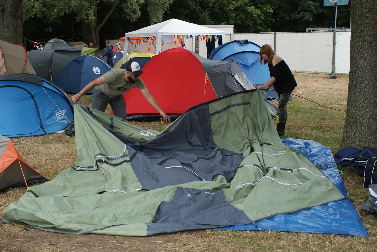 Terwijl ik een wandelingetje over de camping maak en we inmiddels toch al halverwege het festival zijn, valt mijn oog op een paar mannen die nog wat onhandig hun tent aan het opbouwen zijn. Het ziet er allemaal nogal ingewikkeld uit. Een ogenschijnlijk simpele tent opzetten, blijkt toch een ingewikkeld proces te zijn. Handleidingen, goed bedoelde adviezen, het maakt allemaal niets uit. Deze collega’s (marketingmannen) organiseren met enige regelmaat een personeelsuitje naar festivals. Maar ervaring met deze tent hebben ze nog niet. Het kwartje lijkt op een gegeven moment te zijn gevallen: 'O, ik geloof dat de binnentent eerst had gemoeten.' Afijn, ieder z’n vak en de tent staat.