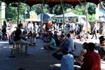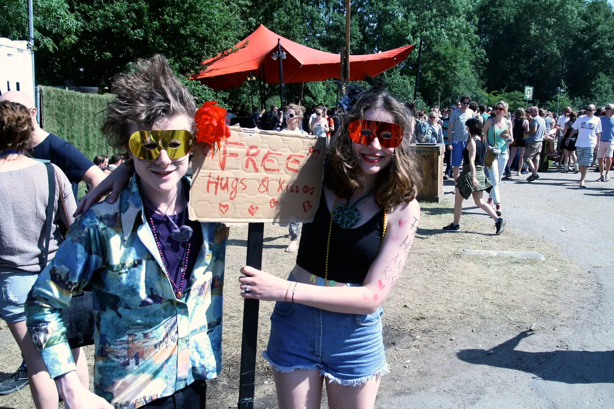 Naast de ijskraam vinden we dit Amsterdams bandje; Cheetah genaamd. Ze spelen psychedelische rock en bestaan net een maand. Ter promotie van hun shows spelen ze elke middag om 12.30 uur op het Vuige Veld naast de kooi en delen ze free hugs en kisses uit.