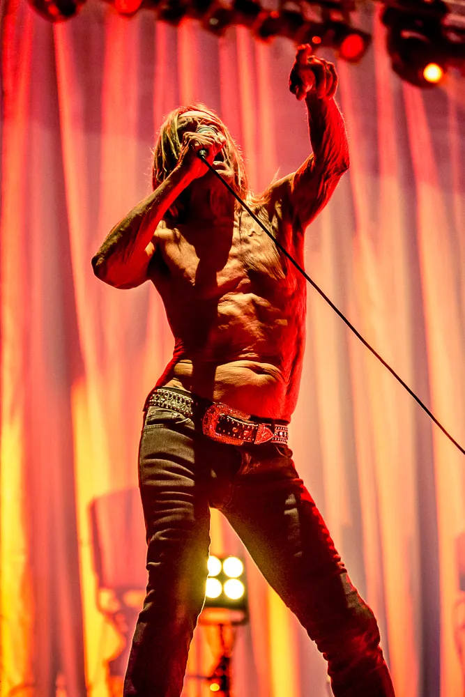 Iggy Pop speelt vanavond drie nummers van het debuutalbum van The Stooges (1969), vier van zijn solodebuut The Idiot (1977) en nog eens vijf van Lust For Life (ook 1977). Van de hele setlist komt er maar een nummer niet uit de jaren zeventig ('Skull Ring'), plus een cover uit de jaren tachtig ('Wild One'), dus we kunnen lastig stellen dat de Amerikaan een actuele artiest is. Maar Iggy dankt een deel van zijn faam natuurlijk ook aan zijn waanzinnige, hyperactieve performances. En als je Pop zo op ziet komen, schoppend, wild gebarend en sexy swingend, in het eerste nummer vliegt het jasje al uit, dan snap je die boeking helemaal.