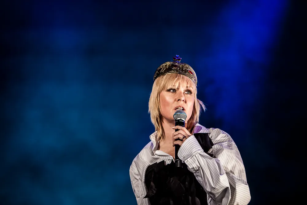 De popkoningin van enkele jaren geleden is niet meer te vinden. Als ze oud werk speelt is het van Moloko - ‘Familiair Feeling’ en ‘Pure Pleasure Seeker’ - die ook een dissonante draai krijgen. Murphy en band laten een experimentele zoektocht horen waarin een dromerige electronische sound verrast kan worden met een stevige bas, waarin onristige gitaaraanrakingen worden afgewisseld met pakkende discofunk. Róisín Murphy is sexy als ze dominant blijft tussen twee gitaristen met maskers die haar insluiten, maar durft ook een bewust onhandig dansje te doen op een ontregelende beat. Het matcht volledig, die modieuze Murphey en de honderd bochten nemende band. Het had nog wel een uurtje door mogen gaan. Róisín Murphy hoeft vanavond niet tot nachtclubkoningin van het festival gekroond te worden. Dat doet ze zelf al.