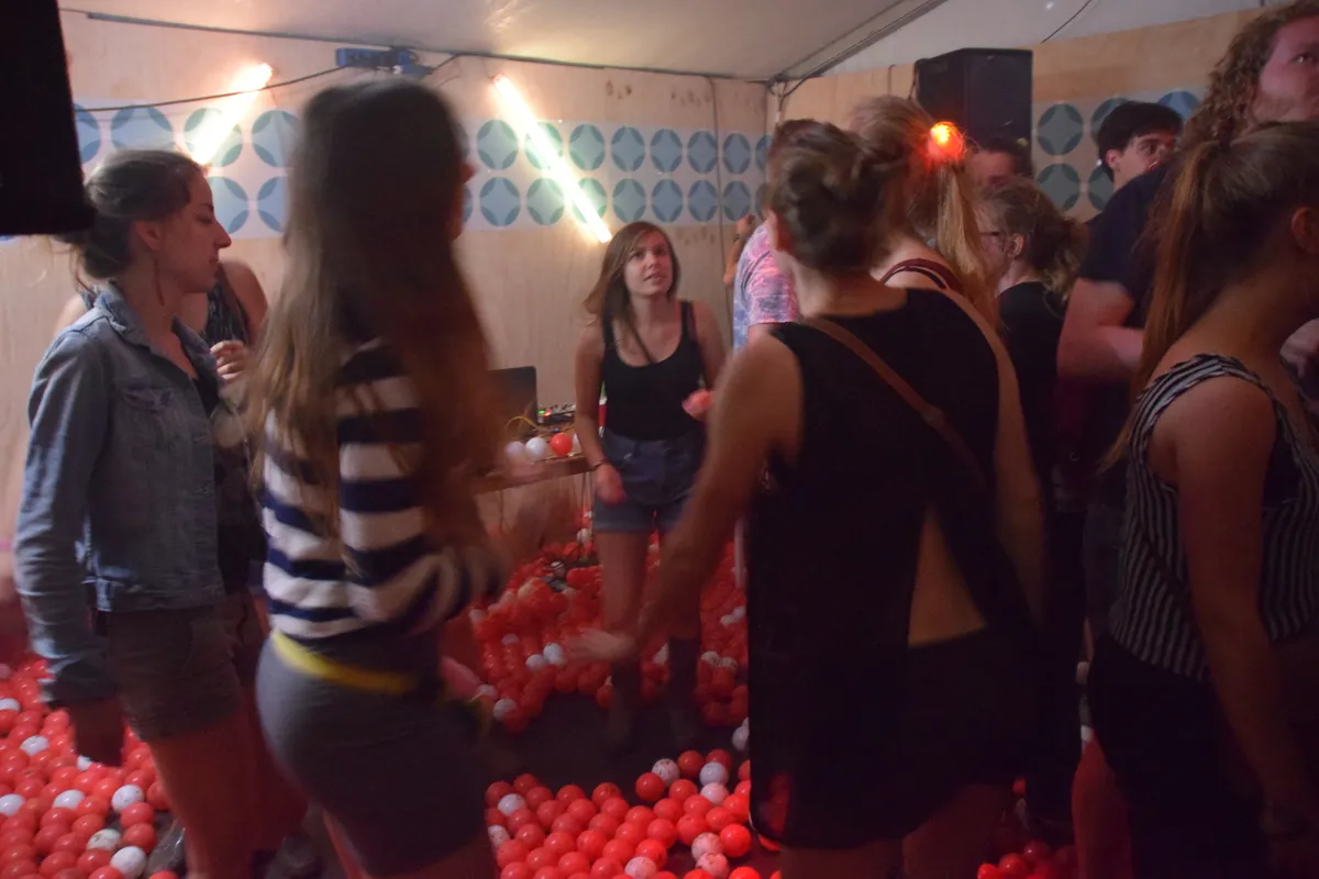 K's Choice, Katy Perry, Lady Gaga, Aqua en de soundtrack van Mean Girls, alles wat je verwacht van een feest door en voor lesbiennes. Vandaag: jonge meiden net uit de kast. In de andere zaal: Lingo de tracklist, grabbel ballen met letters van de artiest uit de soundboks en vind de groene bal.