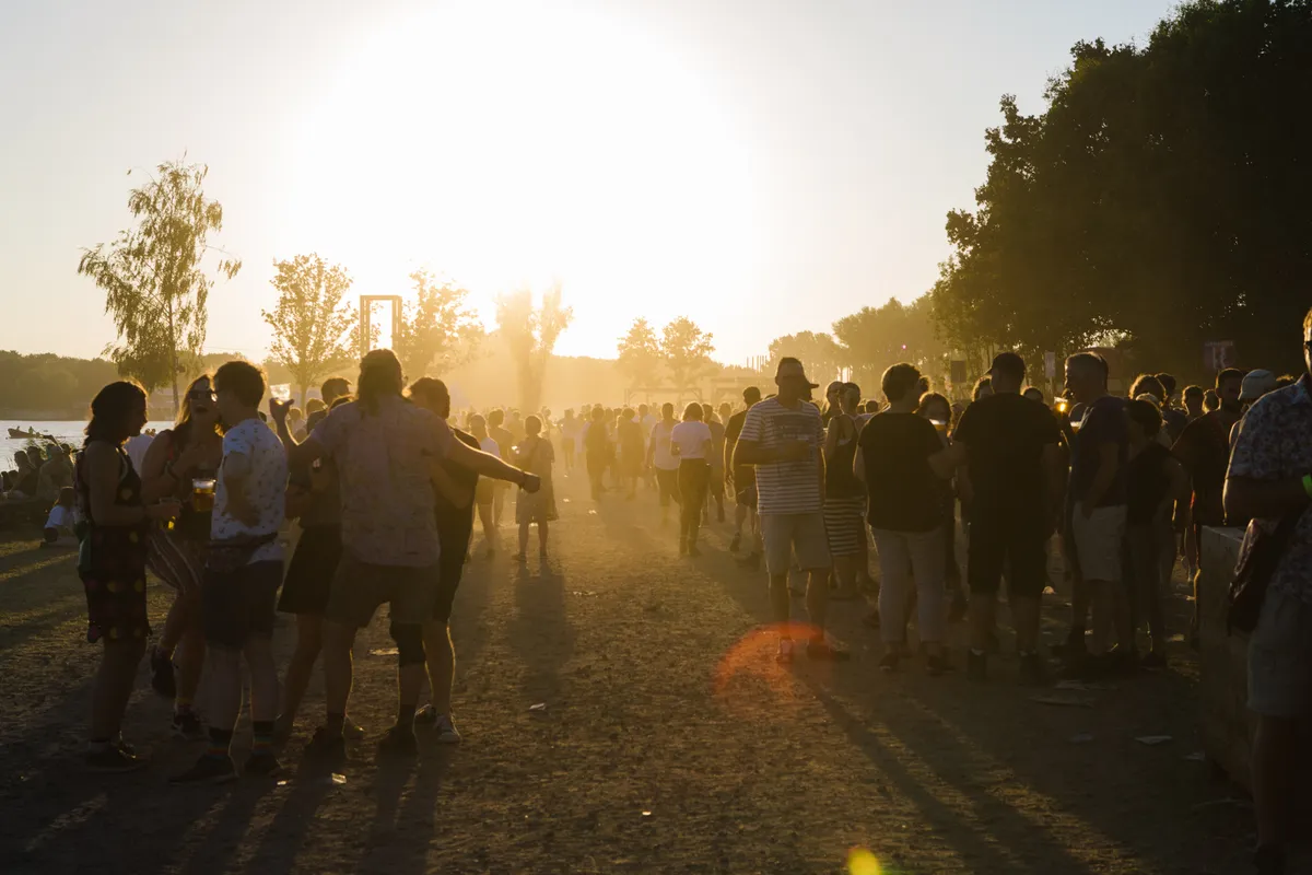 Ja, de echte ster van het weekend is natuurlijk de zon. Kijk eens hoe fel–ie schijnt? En hoe mooi het meer erbij ligt en we in het water springen voor enige verkoeling, terwijl het stof opstuift en horizontale Jacobsladders creëert. Dit weekend voelt Down The Rabbit Hole als het mooiste plekje ter wereld. Echt waar. Wat is de nieuwe Hotot, een openluchtstage, ook een waanzinnig goed idee.