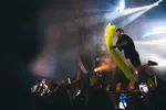 Hoplakee, zo trekt Goldlink een jongen het podium op, geeft hem een luchtbedje dat even eerder al de stage op waaide. ‘3, 2, 1!’, telt de rapper af en ja hoor, dat gastje neemt een flinke aanloop en springt zo op de gewillige handen in het publiek. Even verliest hij zijn evenwicht en kiepert hij ervan af, maar hij weet er weer op te klauteren om een heel eind door de tent te dobberen. Dat vereist skills. Shout out naar jou. Het lijkt overigens een thema dit weekend, crowdsurfen op opblaas-spul: bij Franz Ferdinand duikelt iemand ook al in een opblaasbootje over het publiek.