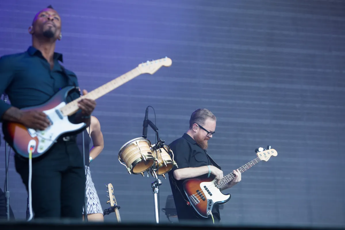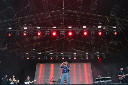 Of het nou aan de zenuwen ligt of niet, spannend wordt het nergens. Bridges blijft bedeesd. De zevenkoppige band speelt strak, maar nooit vurig. Soms is het zelfs wat nep: die meeklapmomenten voelen verplicht, zijn praatjes ratelt hij onverstaanbaar snel. Maar je weet toch wat-ie zegt, want dat hebben we vaker gehoord. 'Deze is voor alle mooie dames in de zaal vanavond!' Dat we op een grasveld staan in de stralende middagzon lijkt niet uit te maken. Bridges start een kom-bij-me-langs-glijer in, maar ook deze song is seksloos. Letterlijk. 'Wees jezelf bij mij, ook al ben je verlegen. Verlegen, dat ben ik ook.'