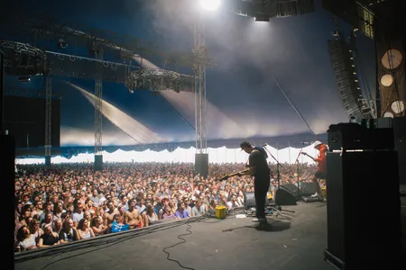 Voor het optreden wordt een filmpje gestart waarin Beavis & Butthead ‘Feel It Still’ aanvankelijk afzeiken maar uiteindelijk besluiten dat Portugal. The Man beter is dan The Beatles, The Stones en Silverchair en bijna net zo goed als Pantera. Bij opkomst verschijnt een Nederlandstalige boodschap op het scherm: de band is niet goed in soepele grappen, daarom heeft het management slogans geschreven. En de slogans, die komen. Er staat: ‘Real bands don’t need singers’. Er staat ‘Y’all like smoking weed!’ En aan het eind: ‘THANK YOU ‘CITY NAME'’. Het is net zo nietszeggend als studentikoos. Bloodhound Gang is nog grappiger.