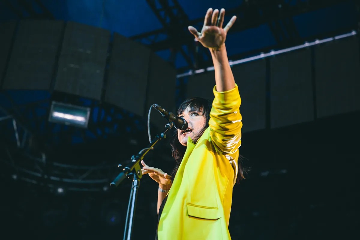 Wat betekent het om mens te zijn op de derde dag van Down The Rabbit Hole? Wat betekent het om mens te zijn wanneer je bent doorgegaan totdat de zon zijn blije gezichtje weer liet zien? Wat betekent het om mens te zijn wanneer je niet meer weet of je bruin bent van de zon, of van het stof? Wende Snijders probeert al het hele weekend festivalgangers te prikkelen. Met een uitzinnige trouwceremonie, waar mensen echt met tranen in de ogen stonden. Met een preparty voor haar show die niet helemaal van de grond kwam. En met een show die zindert. ‘Is het nog zondag?,’ buldert ze. ‘De rustdag, de dag om na te denken.’ Haar grootste gebaren zouden op de zenuwen kunnen werken, maar ze komt er echt mee weg.