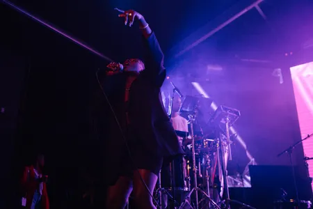 Maar daar zit natuurlijk ook meteen het mankement van deze live-band. Alles aan dat andere drietal schreeuwt 'sessiemuzikant', compleet met de uitstraling van een garnaal. Dat weten ze bij Tshegue zelf ook wel: bij de vlammende afsluiter 'Muanapoto' zetten ze de achtergrondmuziek maar gewoon aan van een bandje en mag het drietal met wat drumstokken spelen.