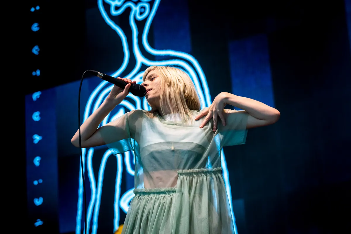 AURORA dus, een Noorse zangeres die de sprookjesachtige uithalen van Kate Bush combineert met synthpop, rechtsaf vanaf Robyn en Lorde, en daarmee al een paar jaar meedraait op de grotere podia. ‘Ze zingt wel mooi... maar ze is gewoon gek’, brult de ene gast in het oor van de ander. Ze heeft inderdaad nogal wat maniertjes die het bloed onder de nagels vandaan halen. Met pirouettes laat ze haar sneeuwwitte jurk fladderen, vol pathos zwaait ze met haar armen in de lucht en telkens weer vraag je je af hoe ze niet continu buiten adem kan zijn van al dat gehups. ‘Ik heb vannacht niet geslapen, vandaar dat ik me een beetje maf voel’, stamelt ze. Als je zulke grootse gebaren weet te doseren is het leuk, maar een uur lang op 200 procent aan staan, dat is knap vervelend.