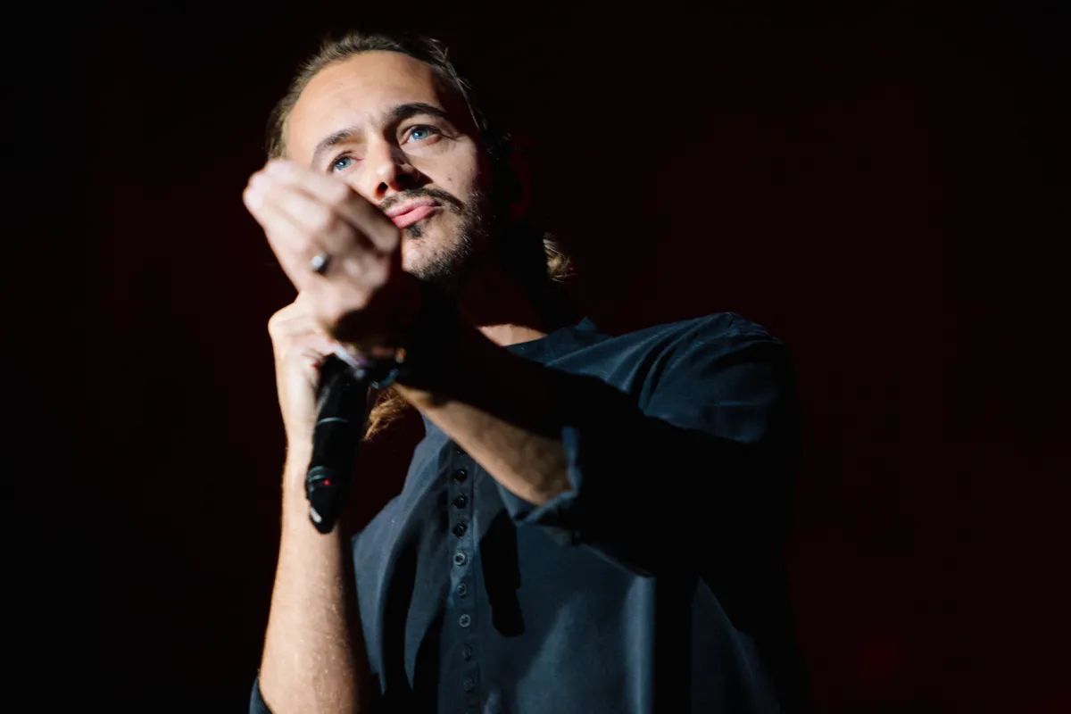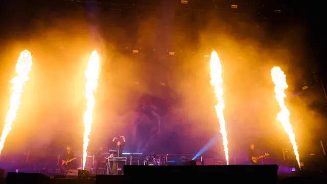 Lange tijd blijft die gedachte ook wel door het hoofd spoken tijdens deze show. Ja, er is geweldig vuurwerk, gigantische vuurtongen die aan het dak van de Hotot likken, jubelende confetti, gouden glitterregens en een overdaad aan stroboscopen. Ja, Tom Smith is zijn theatraal gekwelde zelf weer: hij springt nog net niet op de piano, maar krioelt over de stage zoals we van hem gewend zijn en bevriest regelmatig in de meest bizarre poses wanneer een nummer stopt. Dan zwaait hij zijn ene been vervaarlijk naar achteren en zijn hoofd helemaal naar voren. Of hij legt zijn nek achterover op zijn rug terwijl hij zijn gitaar in de lucht steekt. Hoe hou je zo je balans?!