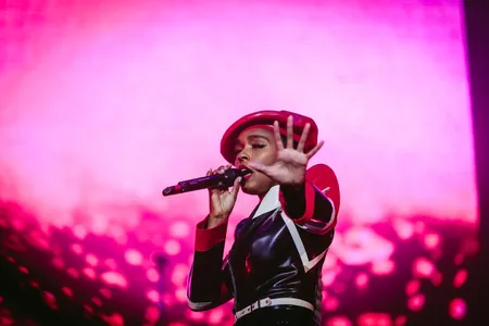 Dan worden ook haar torenhoge ambities nog duidelijker: natuurlijk de knipoog naar Prince in ‘Make Me Feel’, maar ook geweldige Michael Jackson-dansmoves terwijl alleen haar silhouet zichtbaar is en telkens weer referenties naar James Brown. Al helemaal in ‘Tightrope’, waarbij ze de band dirigeert terwijl ze zelf op de knieën valt. Superslick ja, maar geweldig geregisseerd.