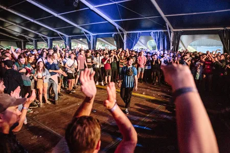 En dit, dit is vooralsnog by far het meest opwindende optreden van Down The Rabbit Hole. Zo zijn er nihilistische sloopkogels als ‘Drug dealer’ en ‘Inglorious Bastards’ waarbij hijzelf de verse van Skepta souffleert, het introspectieve 'Gorgeous' en een bizar nummer als ‘IDGAF’, met een miserabel ingetogen couplet in dronkenmansflow, en gillende hook. Slowthai heeft een geweldige stemcontrole, soms blaft–ie, dan schiet hij opeens de hoogte in voor een adlib of mompelt hij. En hij weet precies hoe hij het publiek moet kietelen. Die ‘circle of friends’ bijvoorbeeld, dat is een soort moshpit waarin we als gekken rondjes moeten rennen. Zijn dj, een beer van een vent, springt er ook in om zijn ene sneaker natuurlijk kwijt te raken. ‘Dit is Cinderella!!! Wie de schoen vindt, mag zijn prince charming worden!’ Om even later wat romantisch advies te geven (‘mandem, remember to make your wife come’) en de ene helft van de tent ‘fuck off’ te laten scanderen, en de andere ‘wankers’. Hahaha.