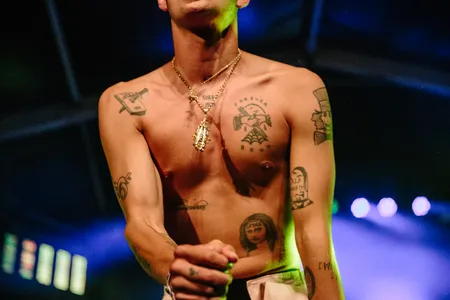 Een paar songs later gebeurt er even héél veel tegelijkertijd: hij doet Heath ‘The Joker’ Ledger na (‘why so serious?’), iemand vindt toch nog die sneaker en de moshpit barst bijna uit elkaar tijdens de loeiharde onuitgebrachte slottrack ‘Psycho’, een soort Denzel Curry op speed. Ah, daar is die kwajongensgrijns weer. Alsof hij net een steen door de ruit heeft gegooid en tegelijkertijd moet grinniken, en overweldigd is door de kracht die hij weet te bewerkstelligen.