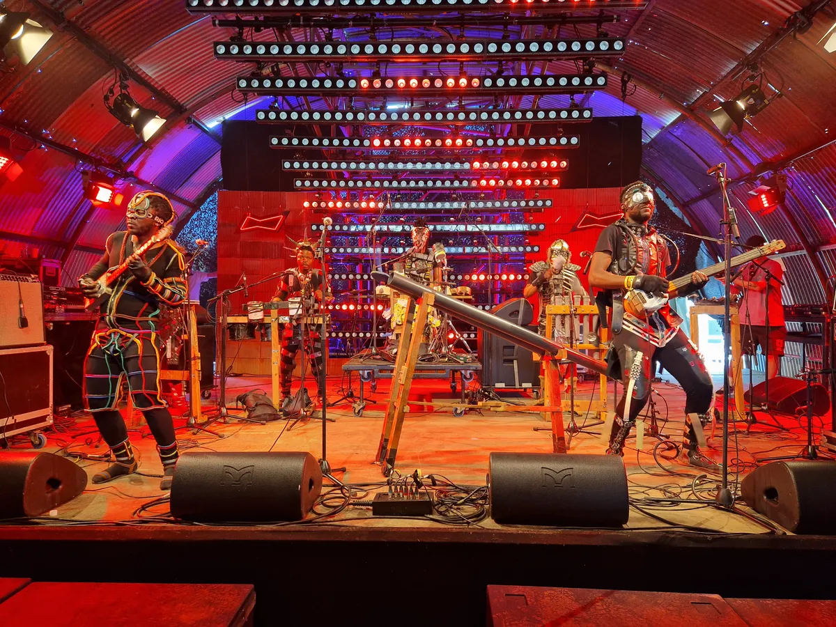 Naast dj’s vlecht Lente Kabinet ook steevast een aantal live-acts in het programma. En dat zijn dan doorgaans geen techno-producers met Ableton, maar bijvoorbeeld Afrikaanse cultfiguren als Fulu Miziki Kollektiv. Zo’n twintig jaar geleden maakte de wereld al kennis met Konono No1, een collectief uit Kinshasa, Congo, dat hyperaanstekelijke muziek maakte met zelfgemaakte instrumenten, en dit Fulu Miziki doet daar sterk aan denken. Uit houten kistjes, pvc-buizen en ander rondslingerspul maakten zijn eigen percussie- en snaarinstrumenten, waarop ze in zelfgemaakte futuristische outfits opzwepende polyritmes de Derde Kamer in slingeren. Charmant door het rammelige geluid van de DIY-instrumenten, maar vergis je niet: deze muzikanten zijn volstrekt serieus te nemen en hebben een boodschap: maak van Afrika geen vuilnisbelt.