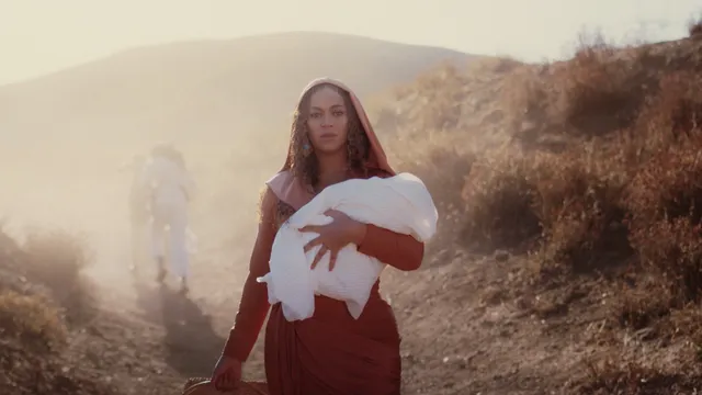 Kijk! Daar! Als je heel goed oplet, zie je dat over de linkerwang van Beyoncé twee dikke tranen biggelen. Black Is King is zo’n zestig minuten bezig wanneer de wereldster even wordt overmand door emotie. Ze zit middenin een furieuze zandstorm, heeft een baby beschermend in haar ene arm gevouwen en een wiegje in de andere hand. En ze weet dat ze het arme kindje dadelijk ook nog op het woeste water moet achterlaten. Op de achtergrond klinkt de wonderschone ballad ‘OTHERSIDE’. Dan begint ze te huilen.
