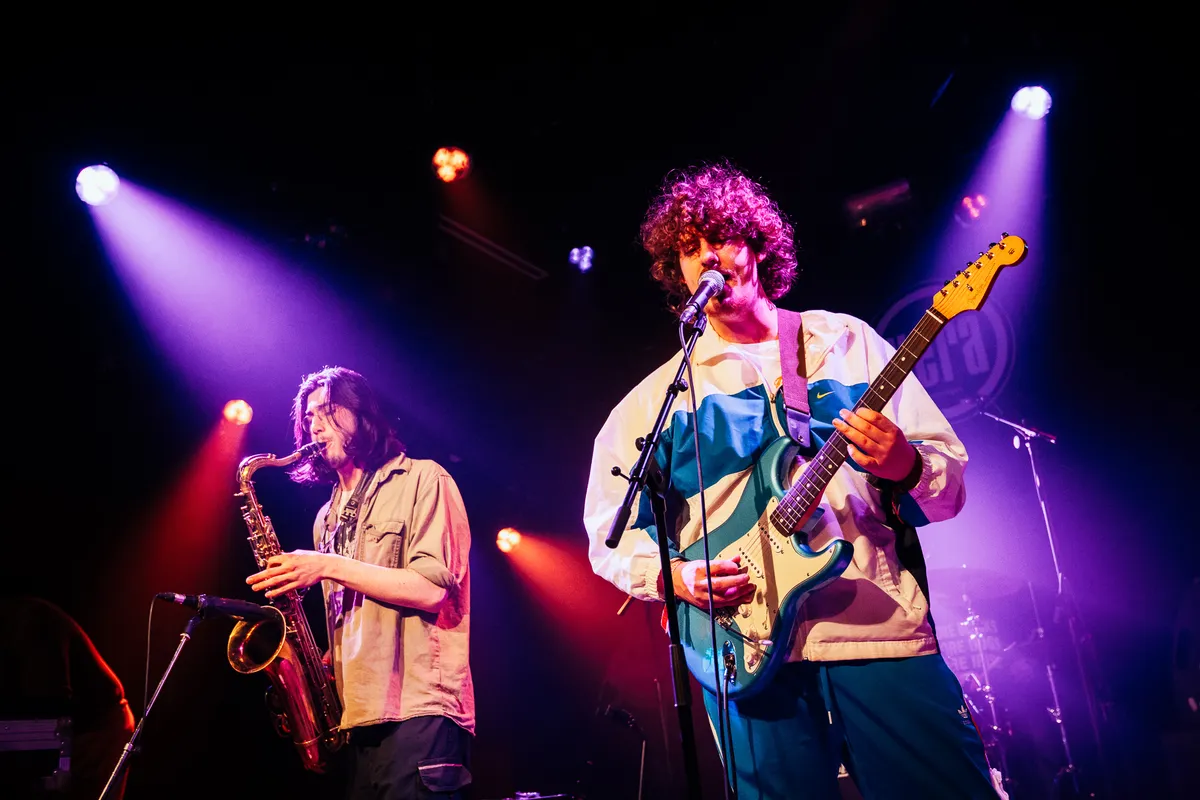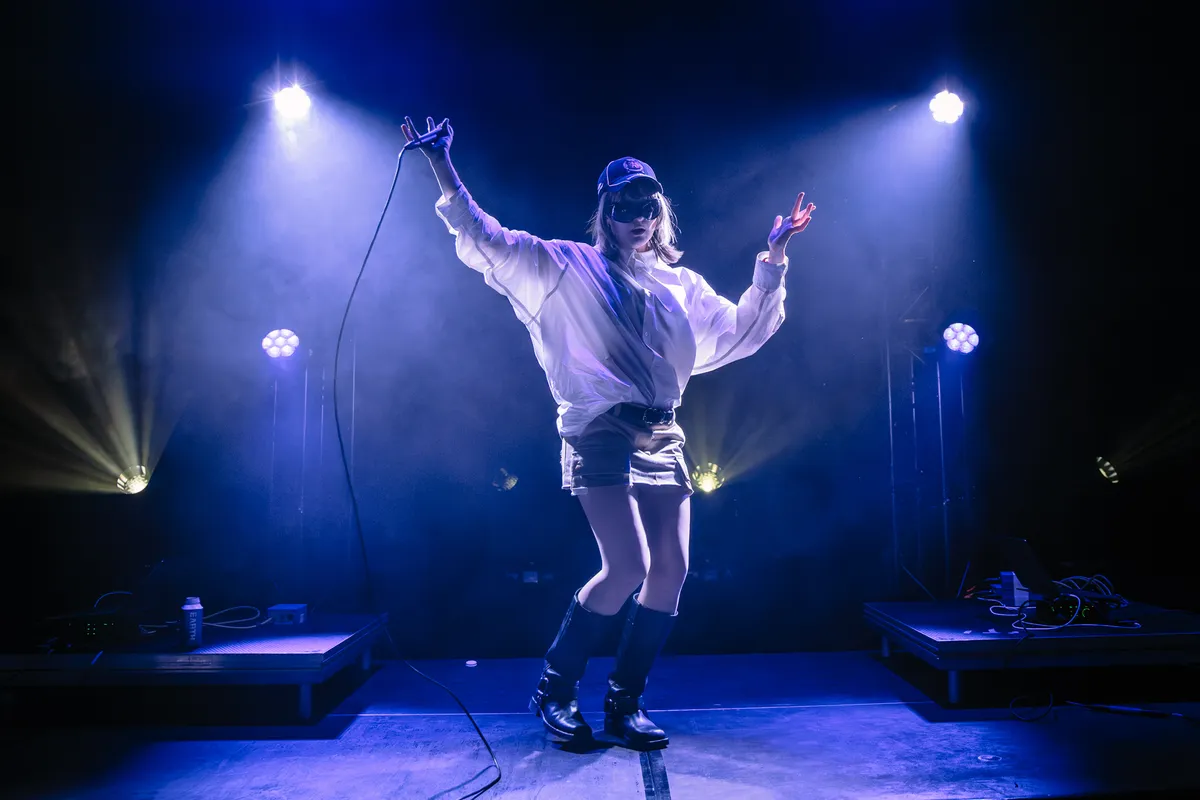 Allereerst: love de look. Zij een Balenciaga-petje, reusachtige zwarte zonnebril en een overhemd dat ook al drie maten te groot lijkt. Hij een PlayStation-pet met schattig kleurrijk hoofddoekje eromheen gebonden, en een oversized David Byrne-pak. Noem je dit dan Oost-Europa-core? Ook: love de muziek van dit Finse duo, ultieme Gen Z-pop ergens tussen Grimes en yeule, met The Cure-gitaarlijntjes en hyperpop in de zwaar vervormde vocalen. Stuk voor stuk oorwurmpjes van jewelste! Dat alle muziek uit twee iPads komt is op zich geen bezwaar, dat ze zó ver uit elkaar staan op dit best lage podium wel iets meer, en dat het geluid zo tergend zacht staat al helemaal. Snel terugkomen dan maar!