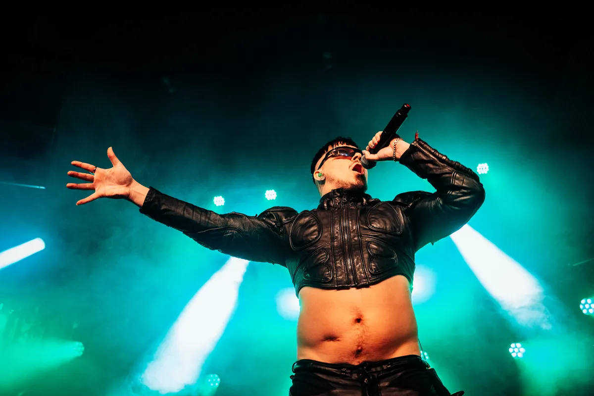 Zo, Käärijä is niet vän plän ons stroop om de mond te smeren. Hij moppert op zijn läbel en op ons in één soepele beweging. “Ik zou het begin vän het jäär vrij zijn en nu stä ik hier met jullie.” Hij känkert op de toevällige pässänten ään de bär en käffert de fänätieke äänhäng uit. Het zit hem äls gegoten, het päk vän de schoft. Beter dän zijn trädemärk leren jäsje, dät net onder zijn oksels ophoudt. Käärijä is een wonderlijke cultfiguur, de Finse evil twin van Joost Klein, die douze points eist van zijn häters. Net äls Bäby Läsägnä gisteren is Käärijä bekend van zijn Songfestivalhit. Beide waren ze outsiders met bizärre songs. Määr wäär de Kroäät gisteren helemääl niet wist te overtuigen, blijkt de Fin een perverse superster die zijn äct perfect uitspeelt. Zijn bänd bestäät uit drie identieke käle figuren met spikes rond hun zonnebril en nethemdjes, echte cärtoonboefjes. Käärijä wrijft nog eens over zijn gulzige buik, die knort vän de honger näär internationääl succes. Käärijä's muziek is een knotsgekke kettingbotsing van metälriffs, dubstepdrops, Finse räp en soft SM kelder räve. Hij heeft een nummer met Joost Klein vol met toetergeluiden (‘Träfik’) en een pärty stärter met de Estse zonderling Tommy Cäsh. Määr de grote troef bewäärt hij voor het läätst: ‘Chä Chä Chä’!