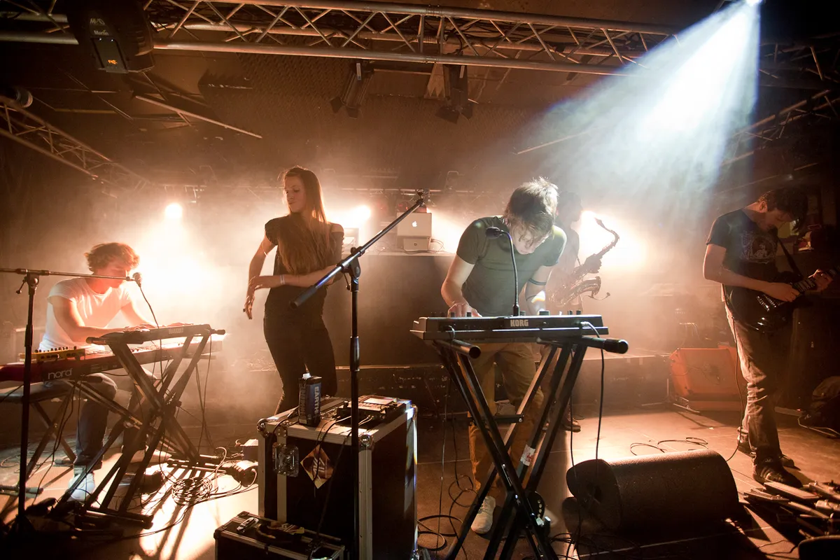 Het is vanavond een komen en gaan van mensen in Simplon en dat is niet heel vreemd. Het programma biedt een grote verscheidenheid aan muziekstijlen. Een gemeenschappelijke deler is misschien dat er veel op “normale” instrumenten wordt gespeeld, aangevuld met elektronica. Het is wel duidelijk te merken wanneer een band niet helemaal bevalt want dan loopt de zaal ook vlot weer leeg.