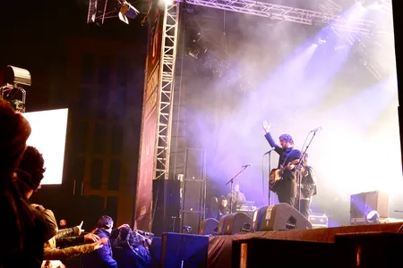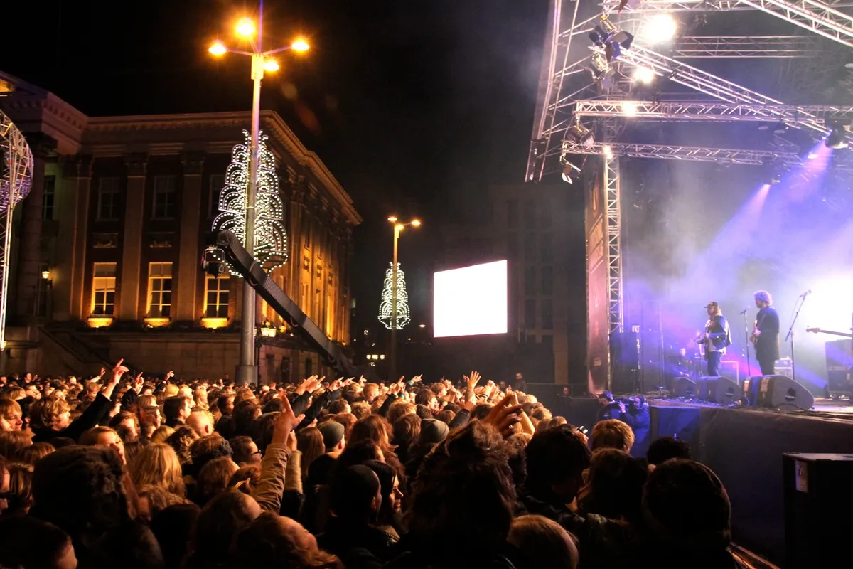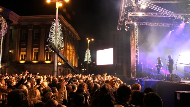 Het lijkt misschien prachtig, maar het is niet makkelijk om nieuw materiaal te primeuren op het Eurosonic buitenpodium. Doordat het vrij toegankelijk is, stroomt het plein vol met braderiepubliek. Vanaf het metershoge VIP-deck word je aangestaard door soep etende bobo’s en de cameracrane vliegt voor je neus. Dan is het moeilijker om je publiek te betrekken bij liedjes die ze nog niet kennen dan bijvoorbeeld in Vera. Nieuw materiaal van de band combineert Britse met Amerikaanse rockinvloeden, veelal van flink wat jaar terug. Waar U2, Oasis en Bon Jovi paren en The Strokes en The Drums daarna op de kinderen letten, zoiets. Het wil nog niet echt opstijgen, dit optreden. Het publiek komt dan ook voor de hits en reageert niet of nauwelijks wanneer Cas opnieuw een nieuw nummer aankondigt. Trage dikke riffs vullen de Grote Markt. Er is duidelijk warmte nodig om deze stroperige track tot leven te wekken. Maar de temperatuur op het plein benadert vandaag het vriespunt.