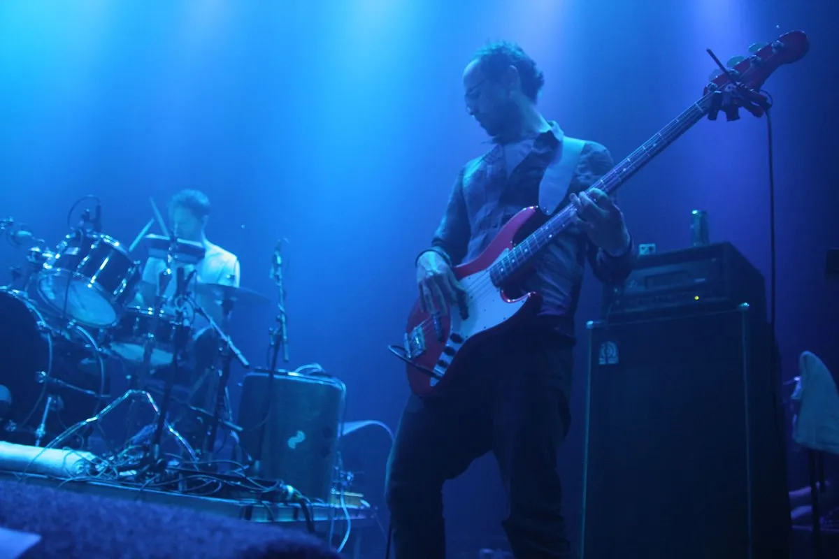 Of 'zowaar', dat klinkt misschien wat onaardig. Het bescheiden internationale succes is ze gegund, en het is bovendien terecht. Binnen tien minuten is ook het publiek in het Grand Theatre omgetoverd in een dansende massa, zonder dat nu allerlei vuurwerk uit de kast getrokken wordt. De drummer speelt strak en gedoseerd, soms alleen de kick en de snare. De bassist heeft een heel arsenaal aan effecten tot zijn beschikking, waarmee hij zeer afgemeten speelt. Dat geldt ook voor de gitarist, die het meest kleur geeft aan de geluidsmix. Ook hij speelt op de vierkante centimeter, met onder meer een soort metalen plaatje waaruit hij een schraperig geluid trekt, dat hij vervolgens met allerlei effecten overlaadt. Niet domweg galm, maar juist een zeer gevarieerd palet aan geluiden.